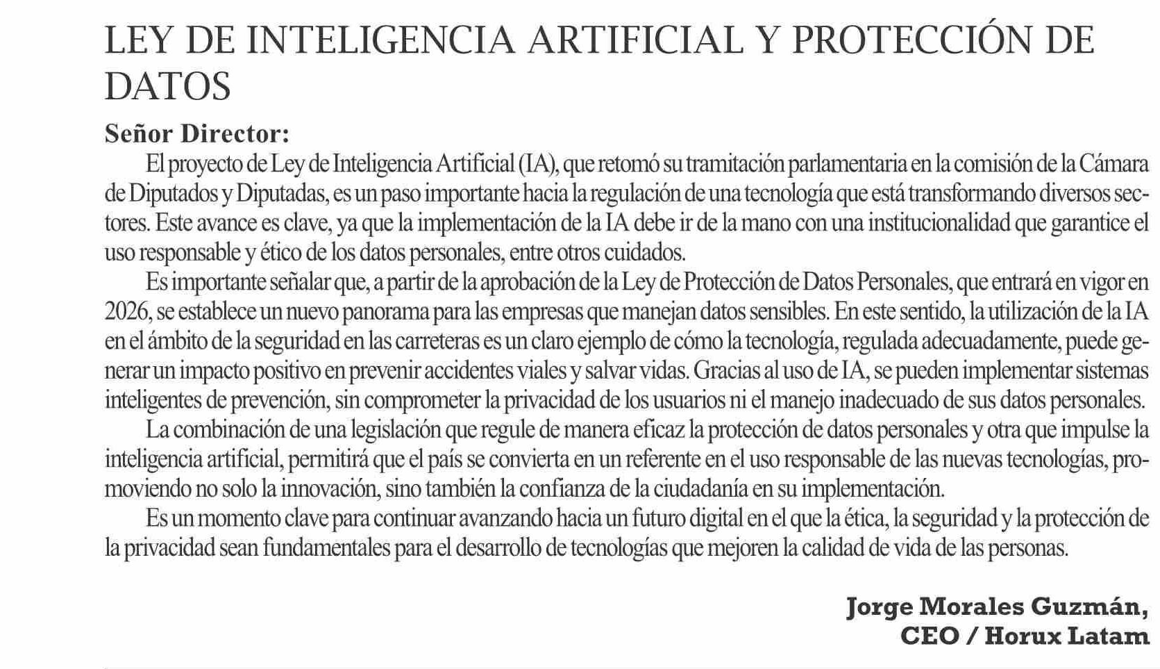 CARTAS: LEY DE INTELIGENCIA ARTIFICIAL Y PROTECCIÓN DE DATOS