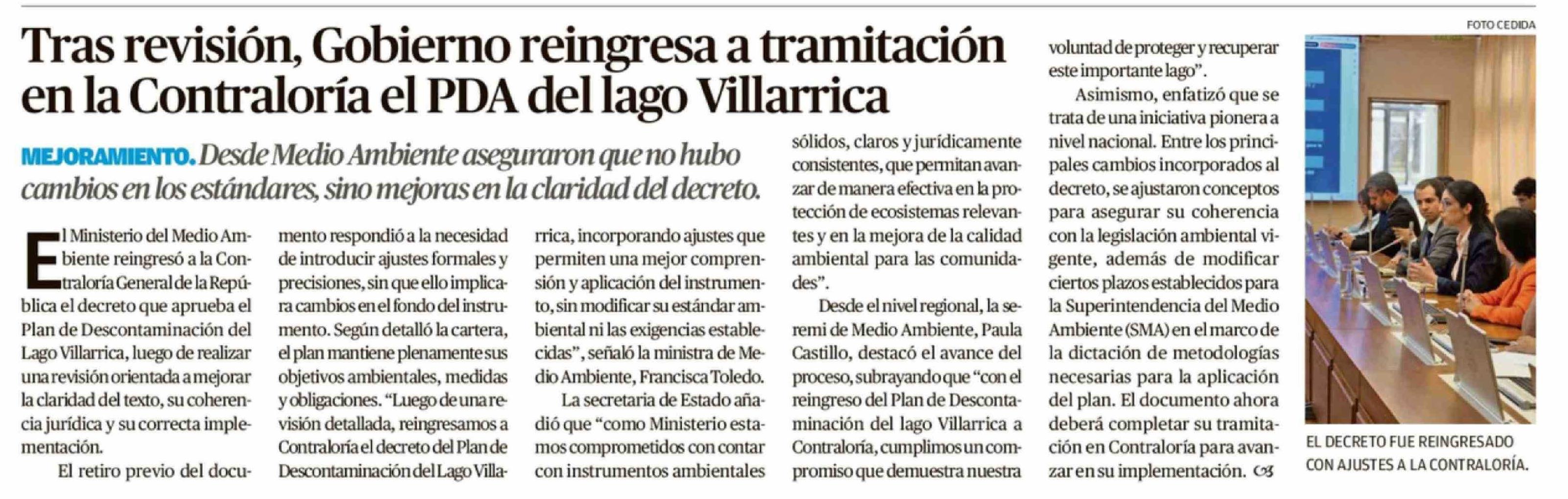 Tras revisión, Gobierno reingresa a tramitación en la Contraloría el PDA del lago Villarrica