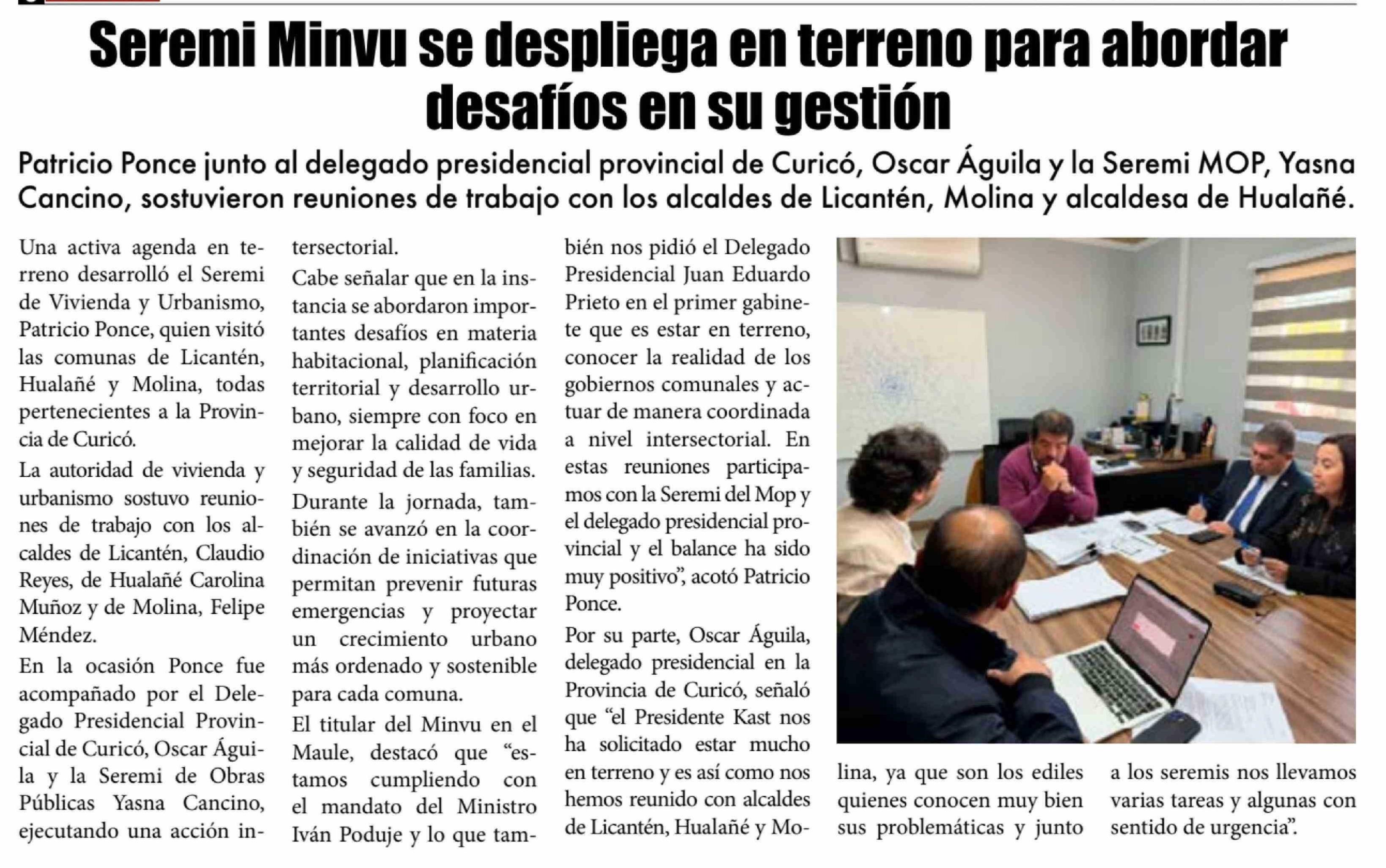 Seremi Minvu se despliega en terreno para abordar desafíos en su gestión