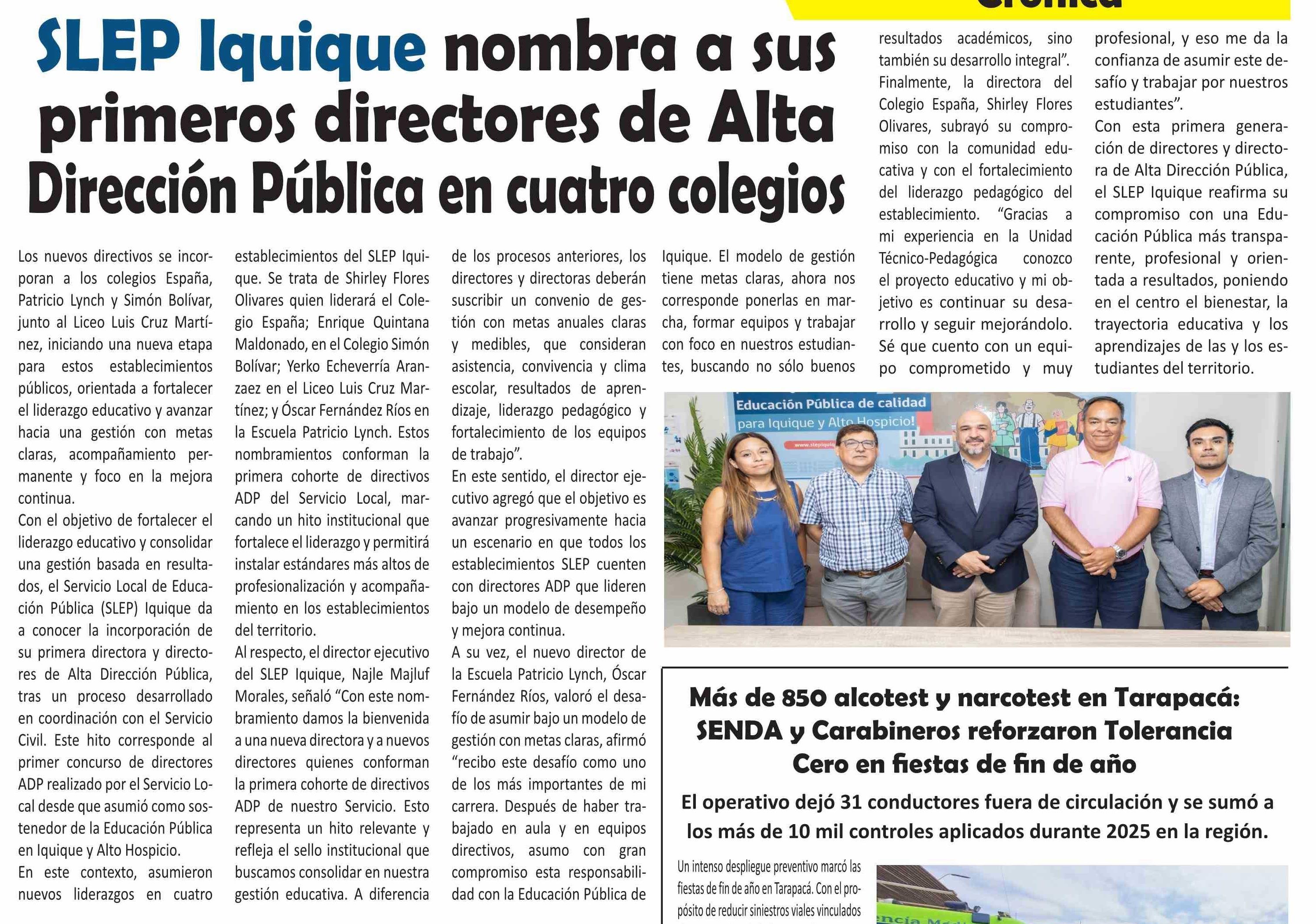 SLEP Iquique nombra a sus primeros directores de Alta Dirección Pública en cuatro colegios