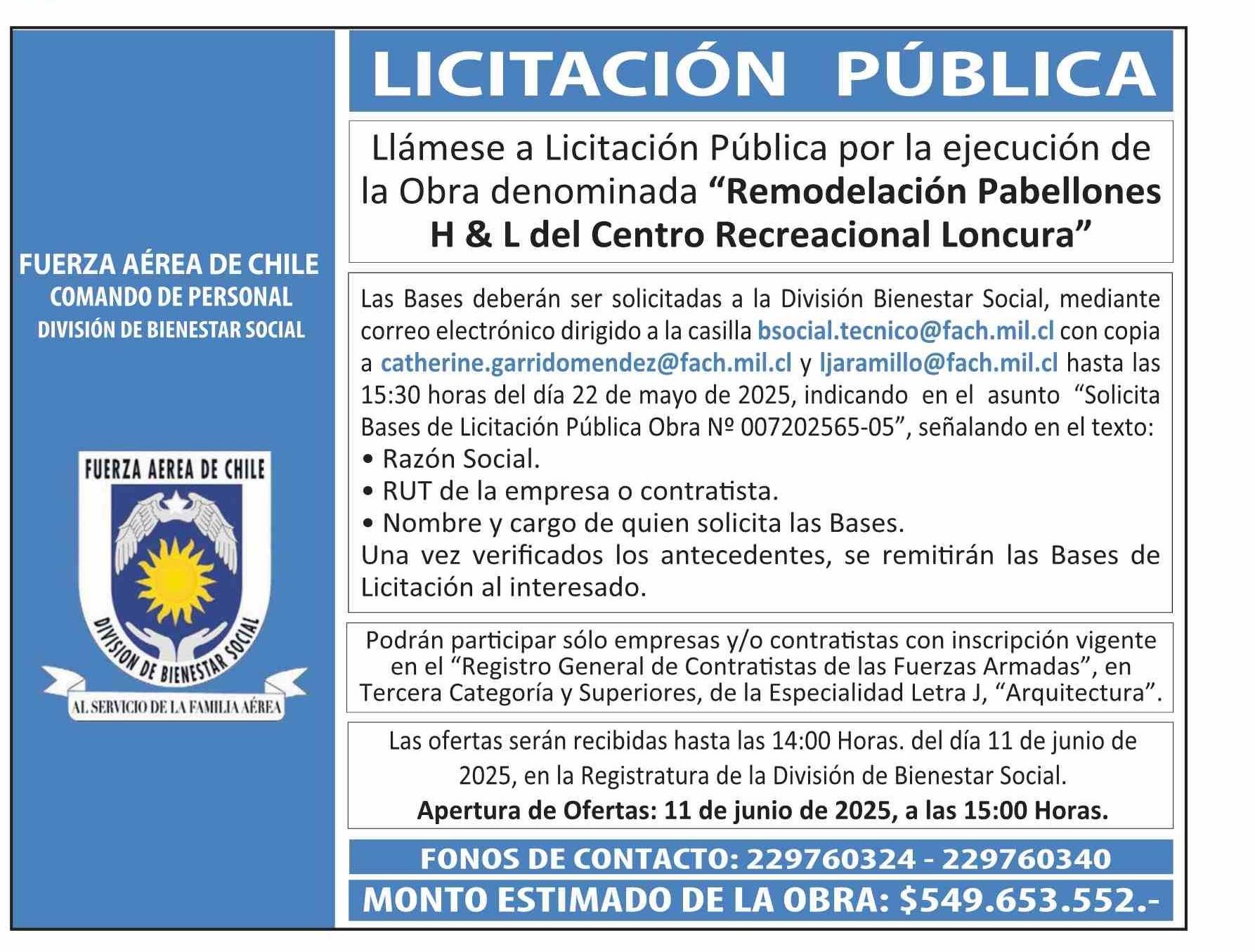 AVISO LICITACIONES: FUERZA AÉREA DE CHILE