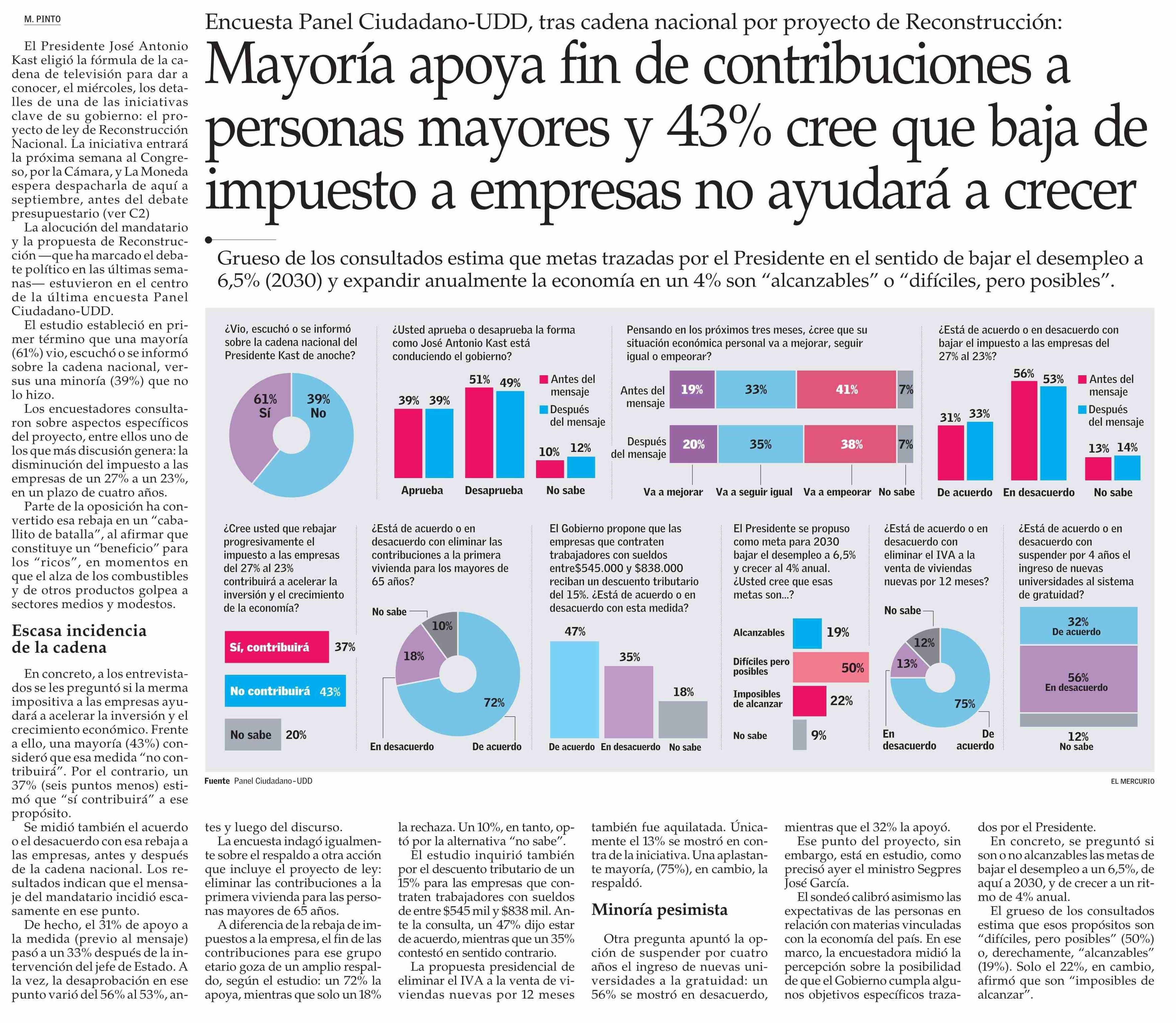 Título: Mayoría apoya fin de contribuciones a personas mayores y 43% cree que baja de impuesto a empresas no ayudará a crecer