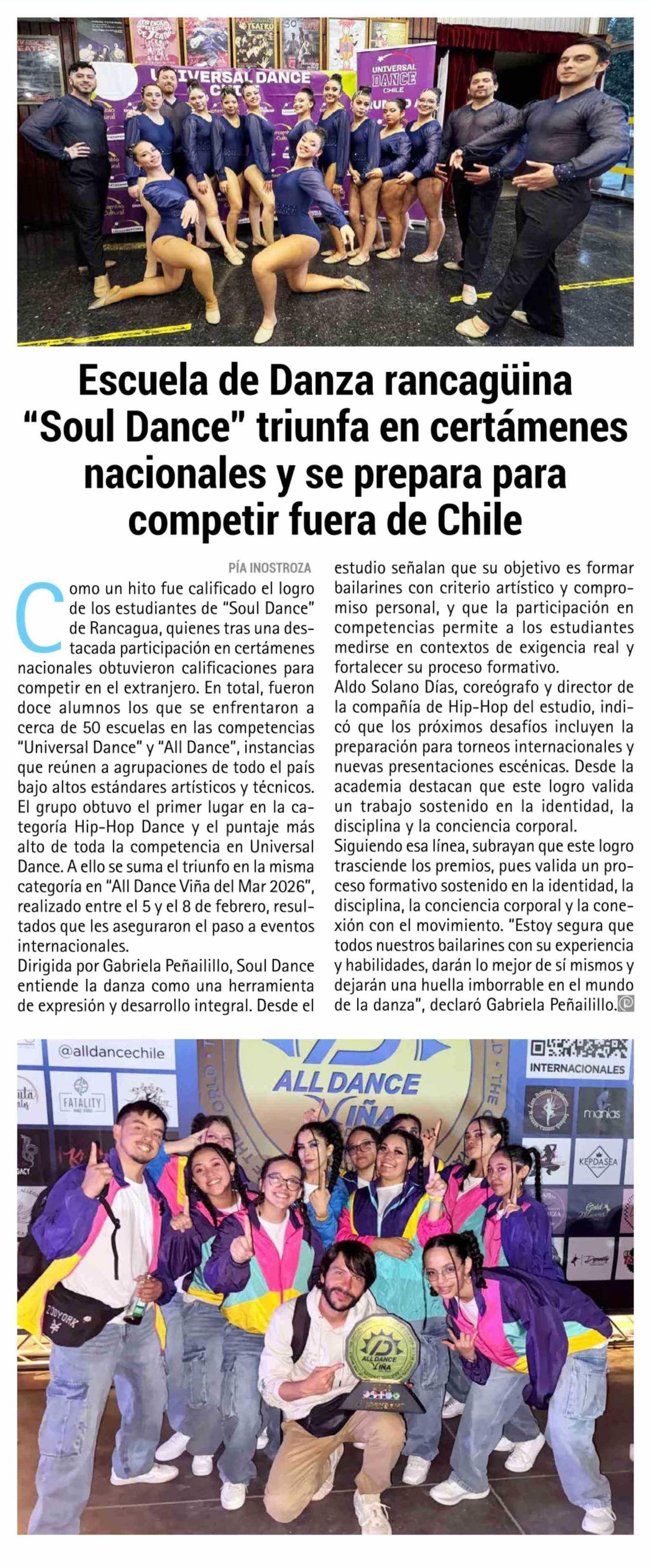 Escuela de Danza rancagüina "Soul Dance" triunfa en certámenes nacionales y se prepara para competir fuera de Chile