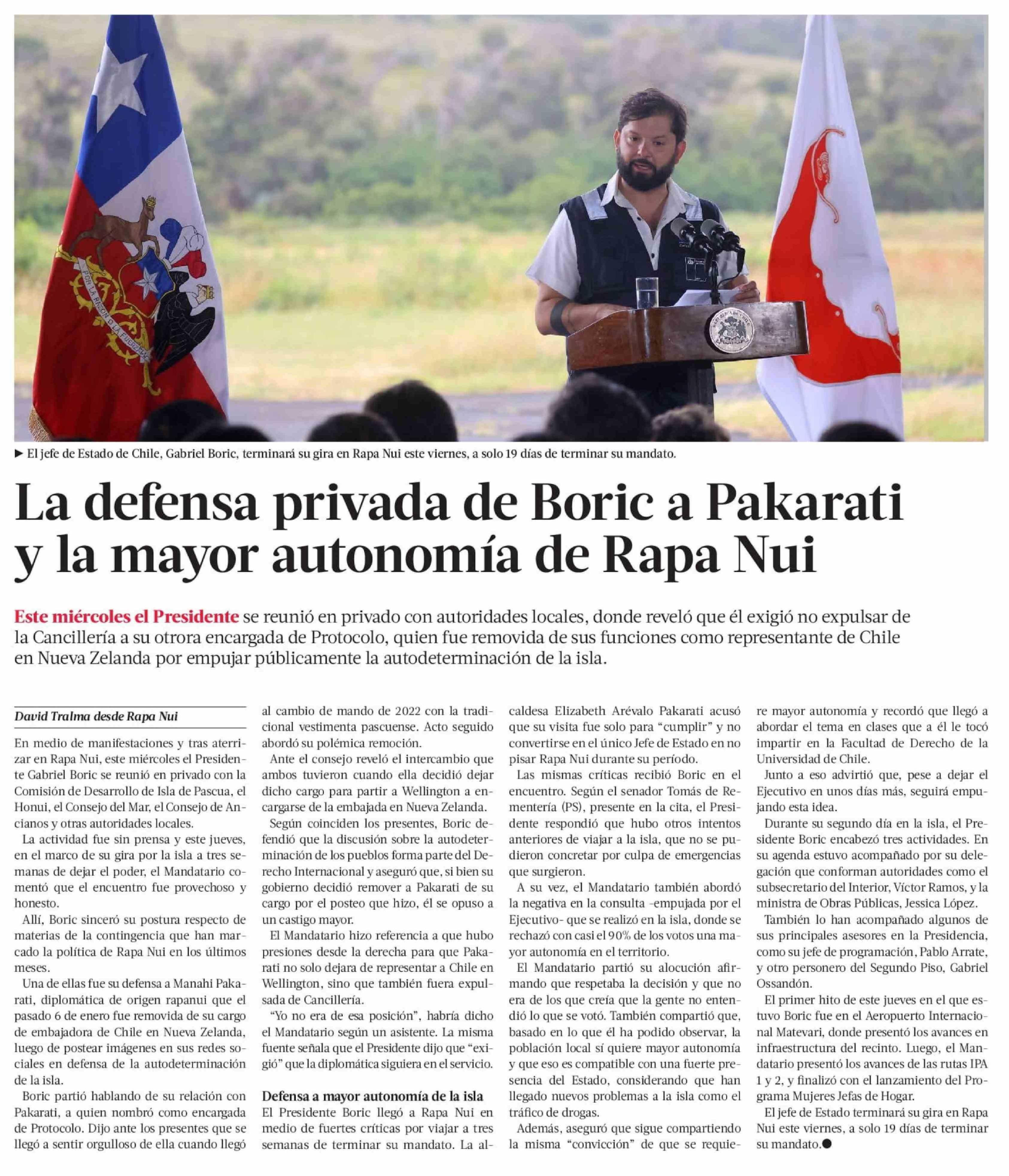 La defensa privada de Boric a Pakarati y la mayor autonomía de Rapa Nui