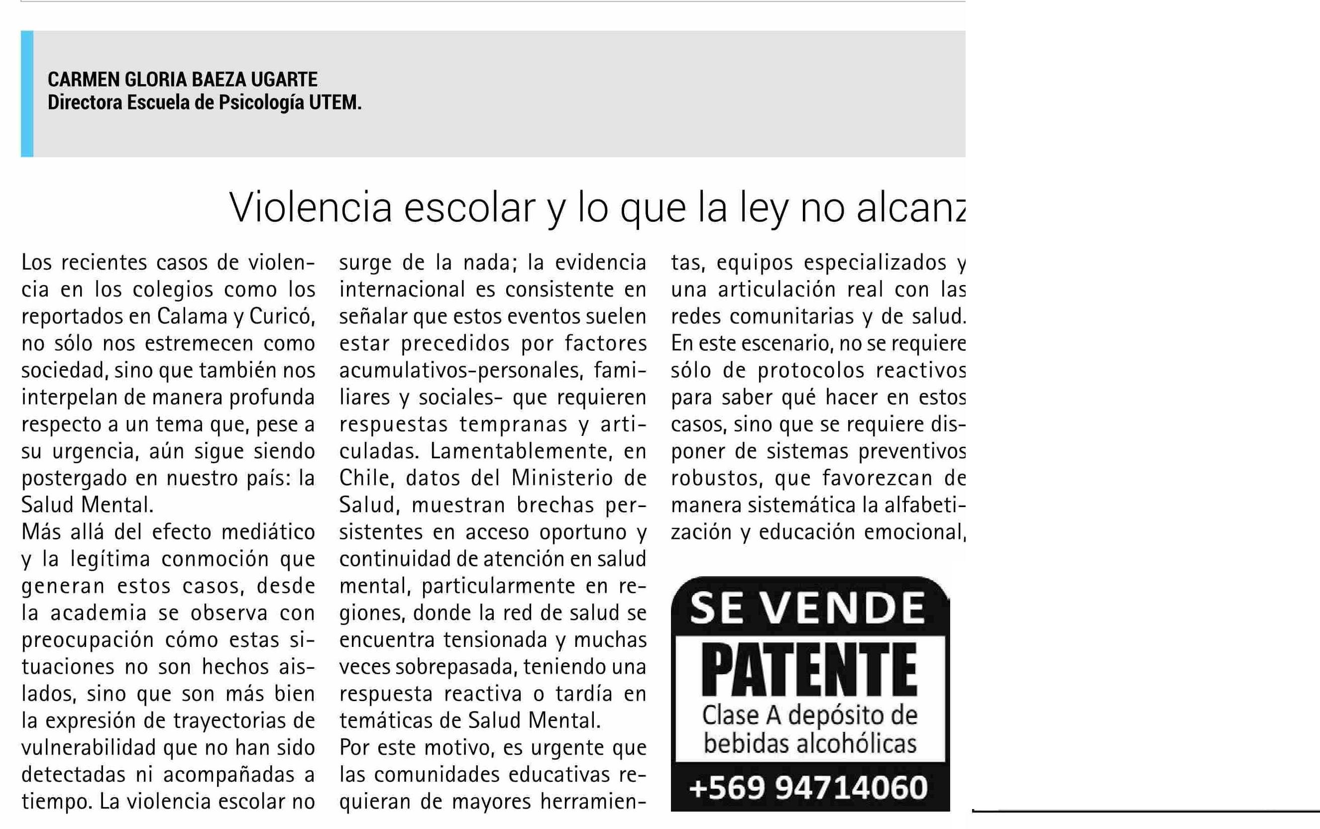 COLUMNAS DE OPINIÓN: Violencia escolar y lo que la ley no alcanza a ver