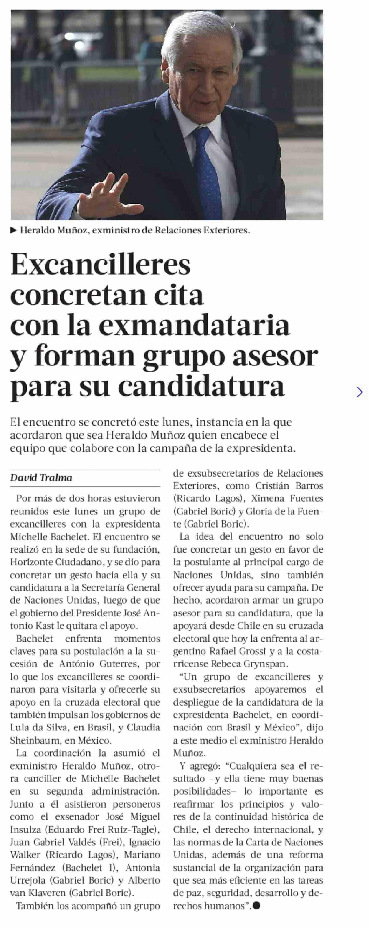 Excancilleres concretan cita con la exmandataria y forman grupo asesor para su candidatura