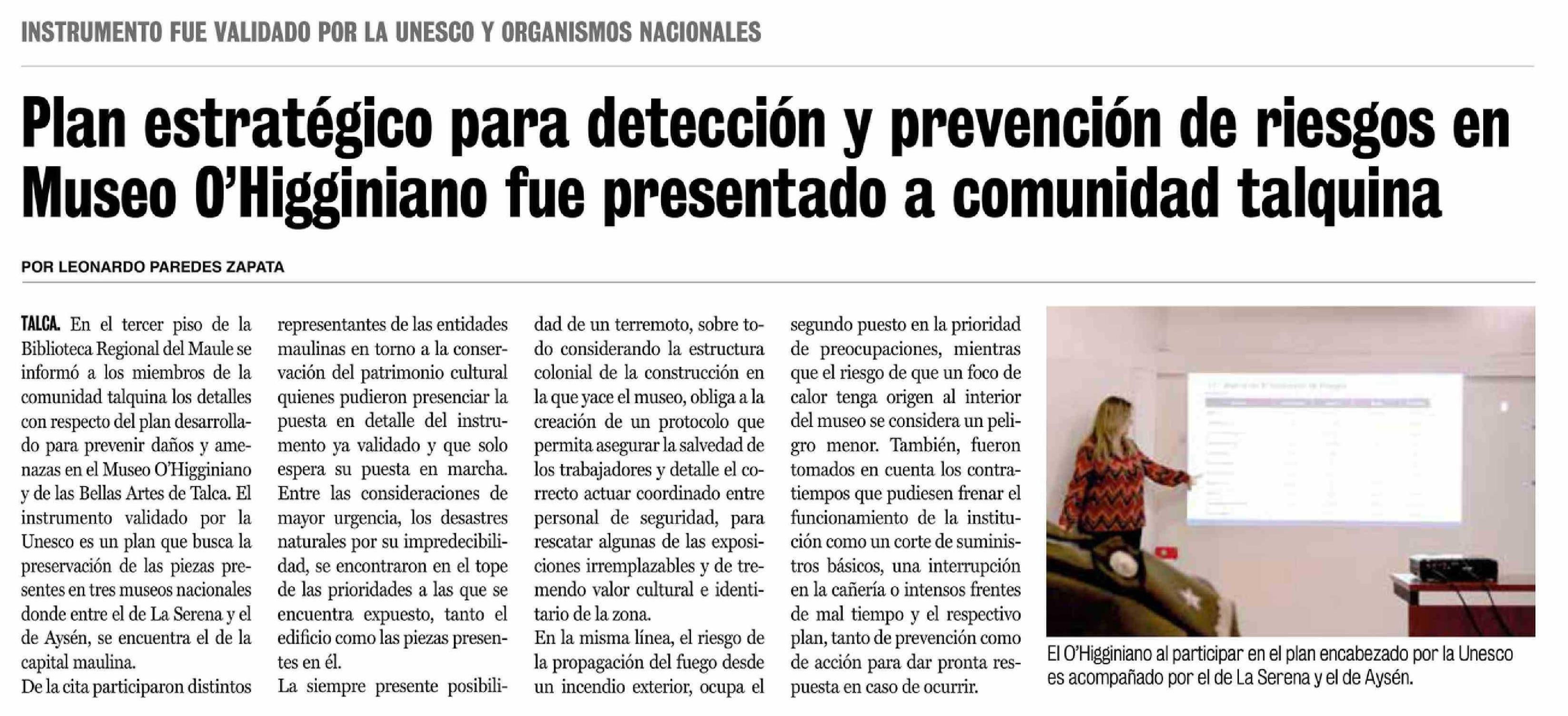 Plan estratégico para detección y prevención de riesgos en Museo O'Higginiano fue presentado a comunidad talquina