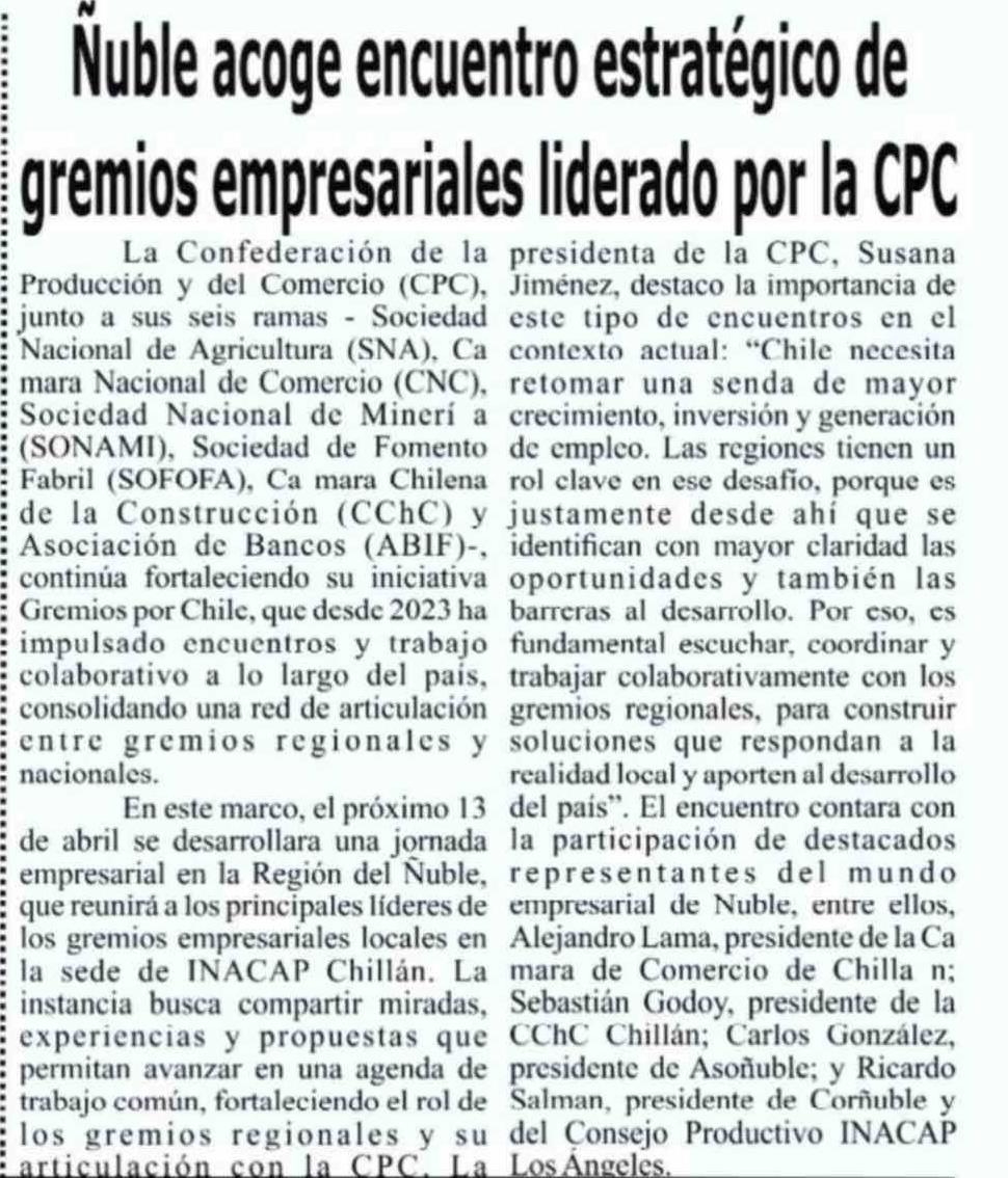 Ñuble acoge encuentro estratégico de gremios empresariales liderado por la CPC