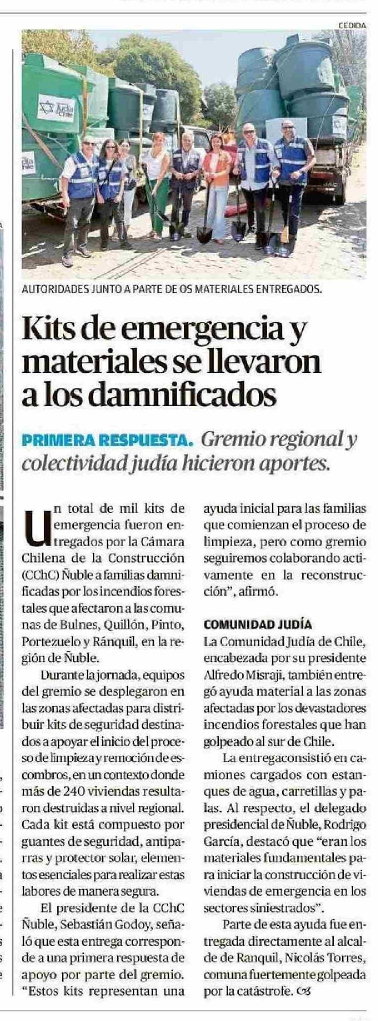 Título: Kits de emergencia y materiales se llevaron a los damnificados