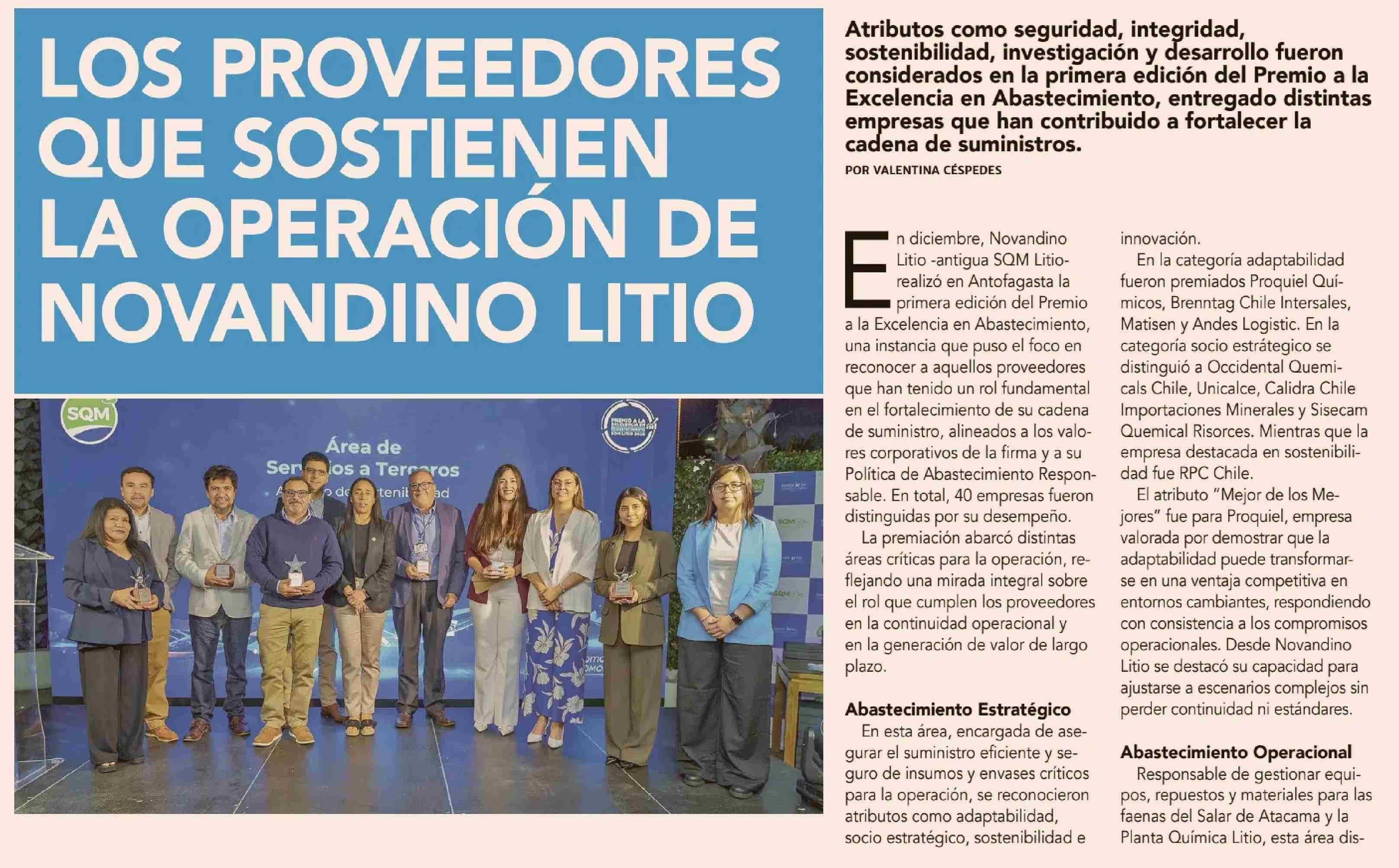 LOS PROVEEDORES QUE SOSTIENEN LA OPERACIÓN DE NOVANDINO LITIO