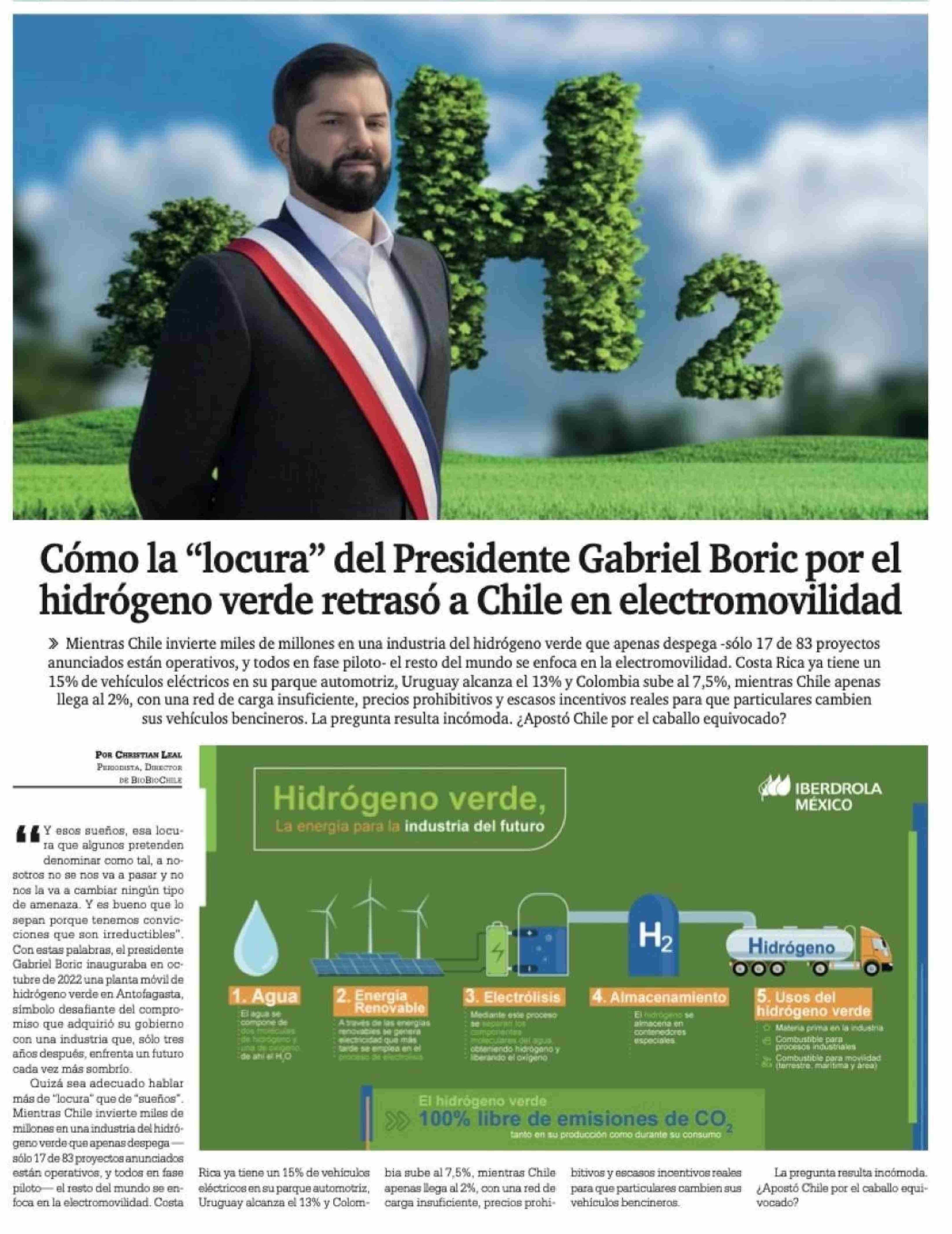 Cómo la "locura" del Presidente Gabriel Boric por el hidrógeno verde retrasó a Chile en electromovilidad