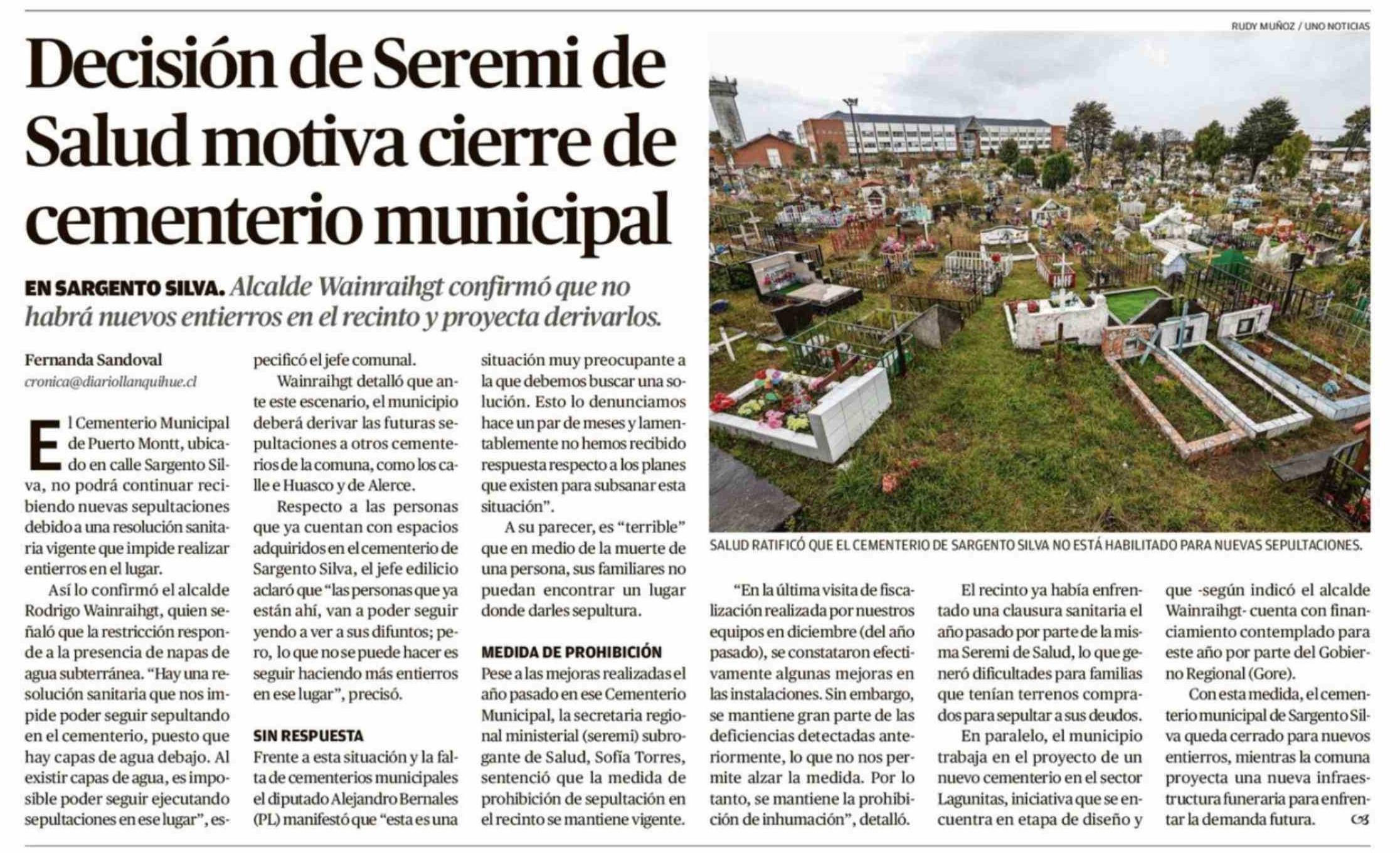 Título: Decisión de Seremi de Salud motiva cierre de cementerio municipal