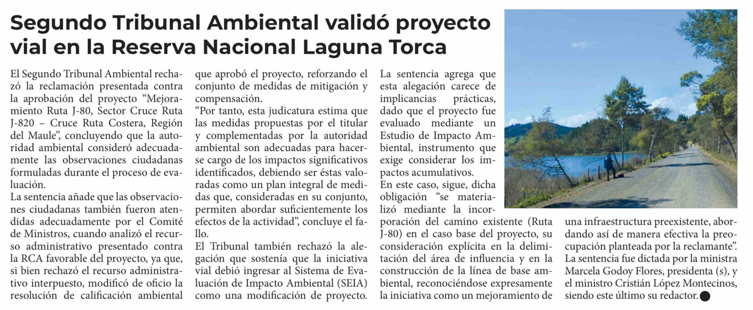 Segundo Tribunal Ambiental validó proyecto vial en la Reserva Nacional Laguna Torca