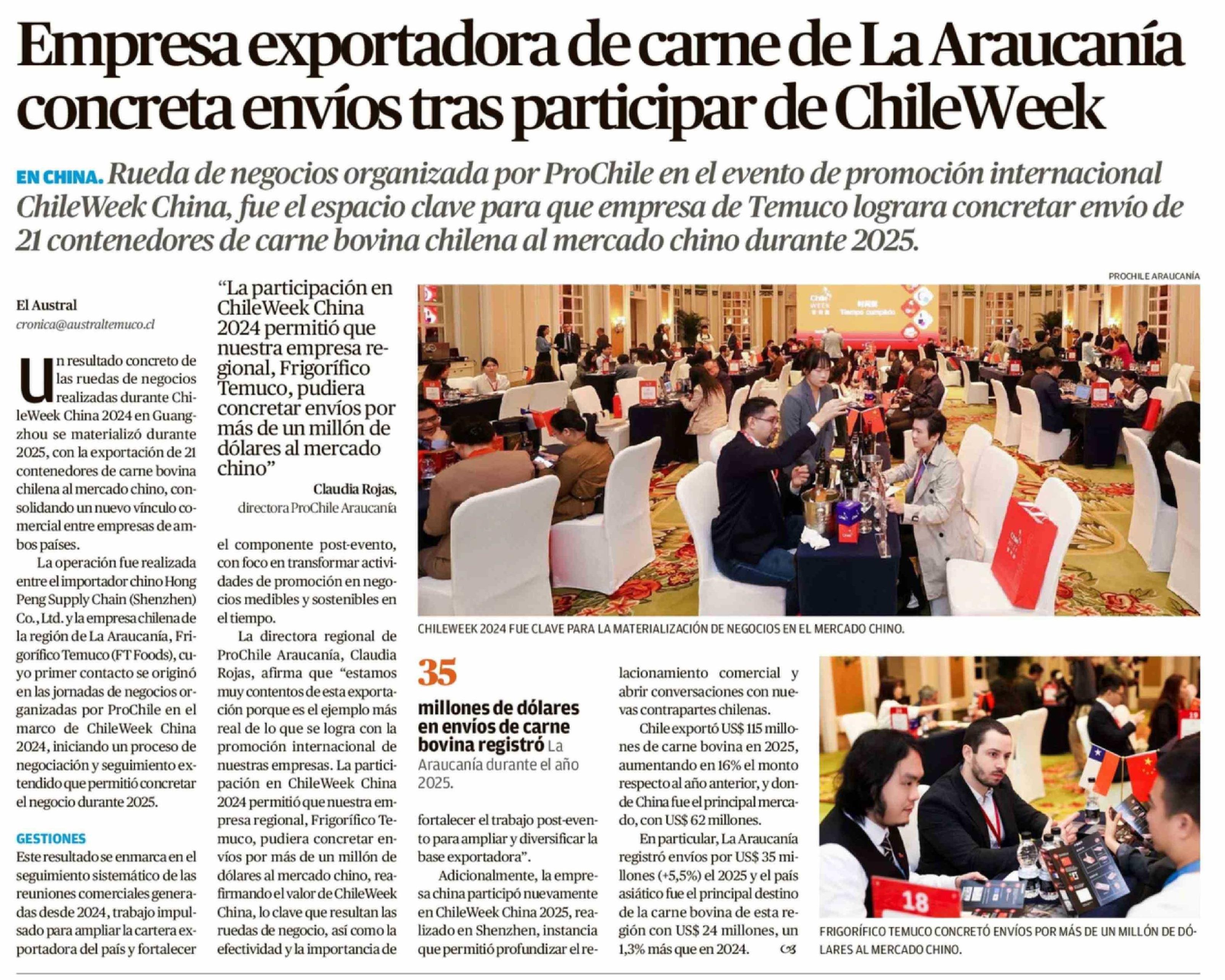Empresa exportadora de carne de La Araucanía concreta envíos tras participar de ChileWeek