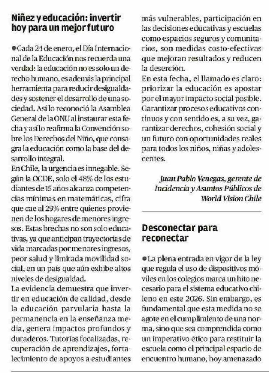 Cartas: Niñez y educación: invertir hoy para un mejor futuro