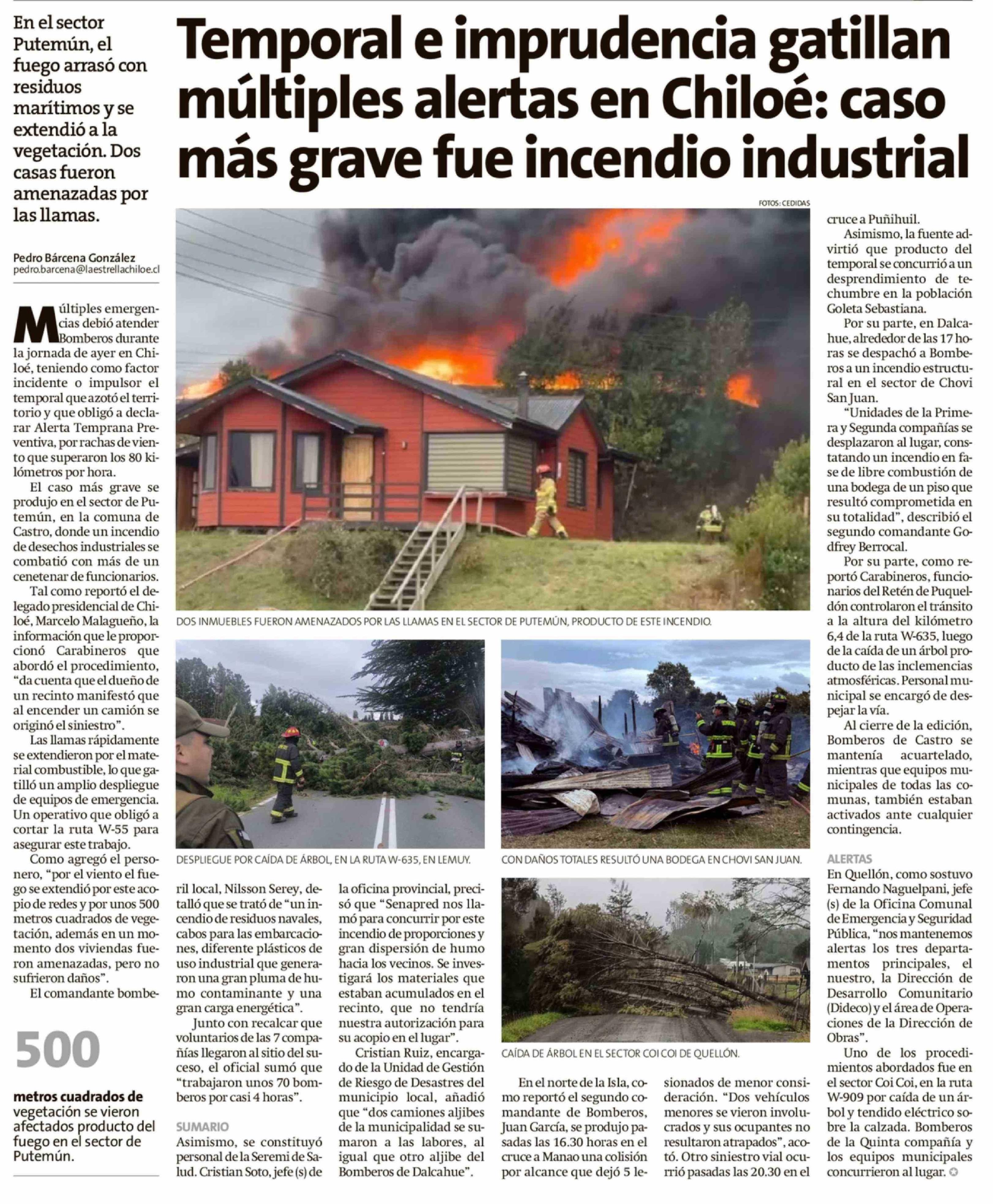 Temporal e imprudencia gatillan múltiples alertas en Chiloé: caso más grave fue incendio industrial