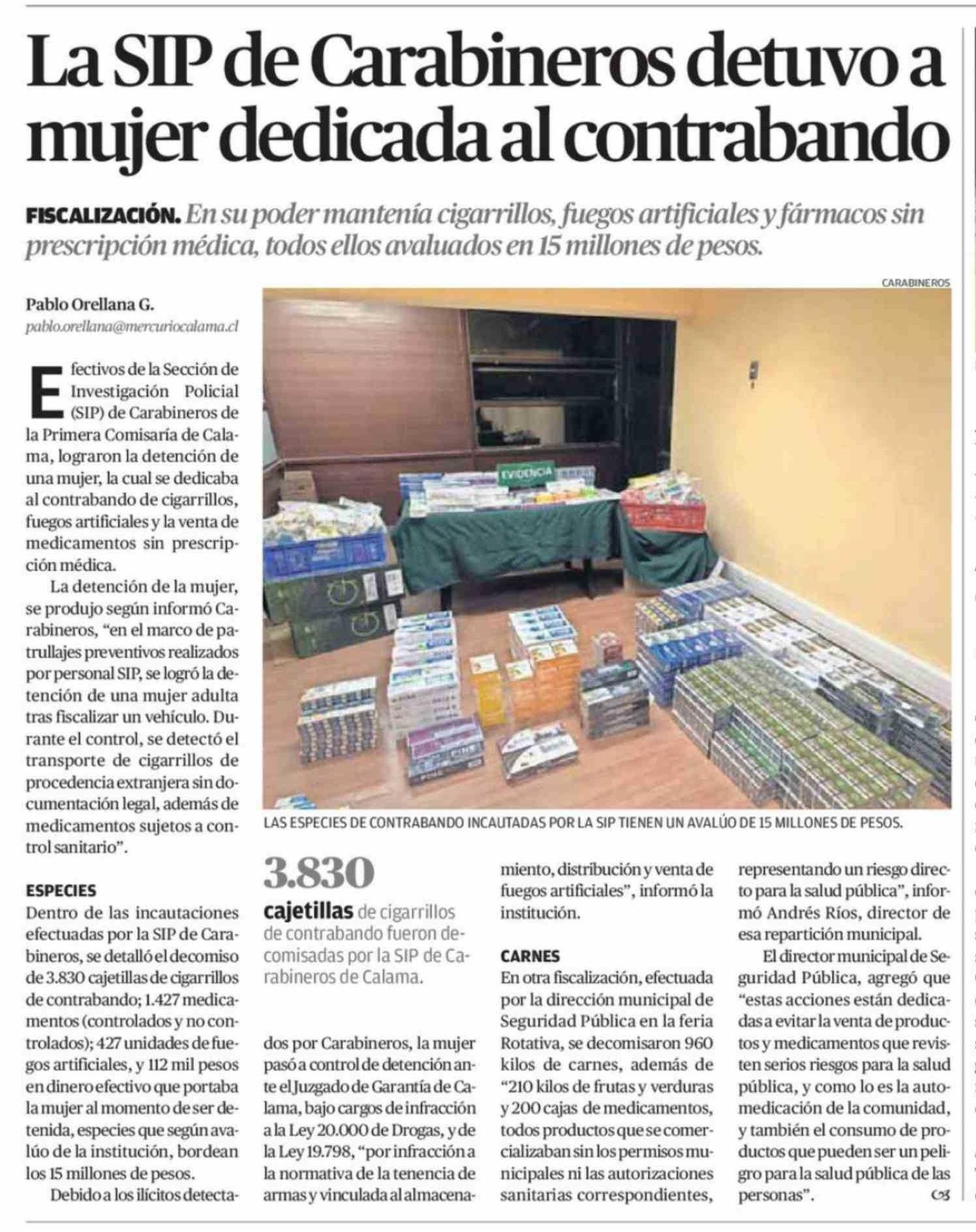 La SIP de Carabineros detuvo a mujer dedicada al contrabando