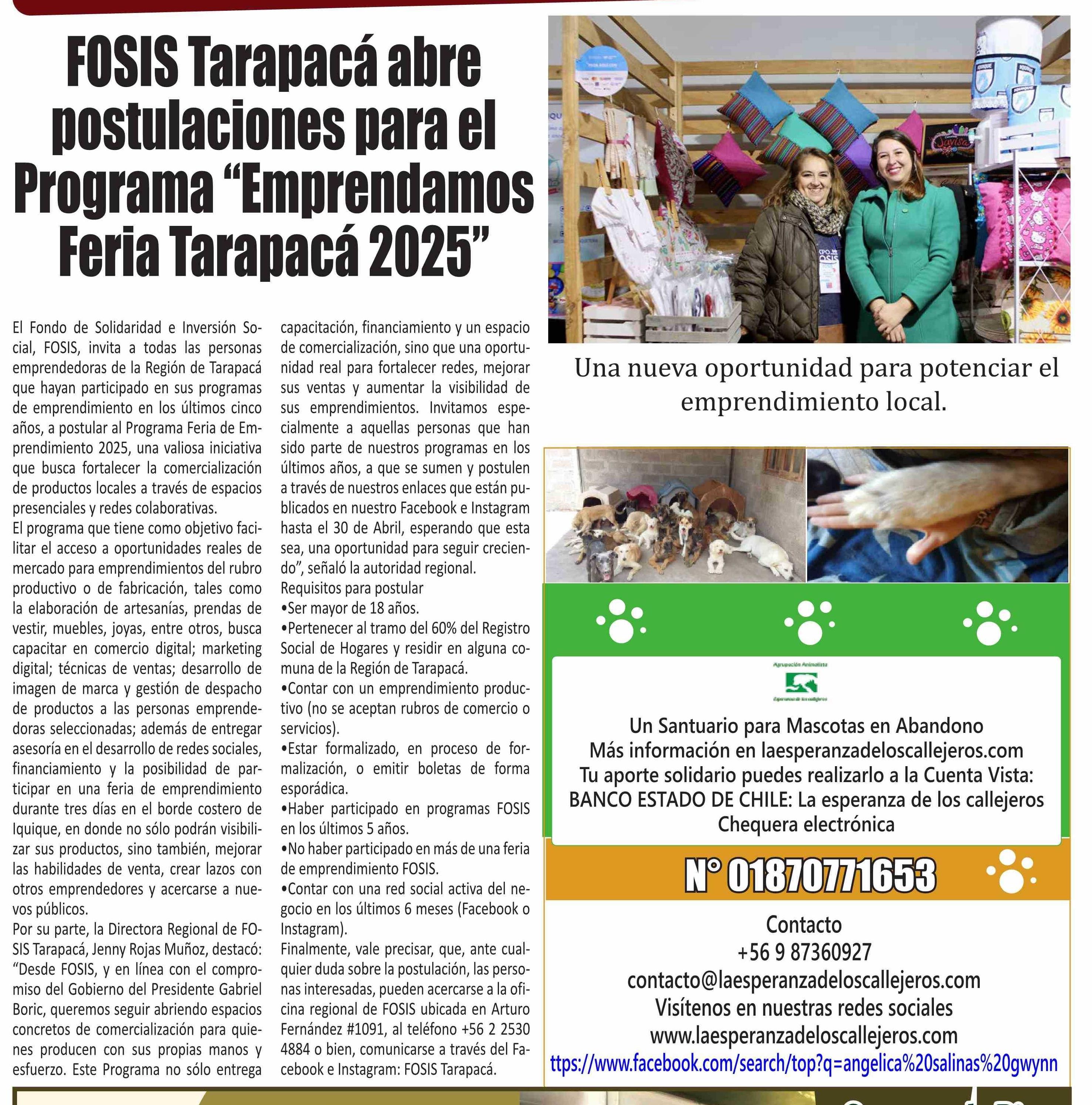 FOSIS Tarapacá abre postulaciones para el Programa “Emprendamos Feria Tarapacá 2025”