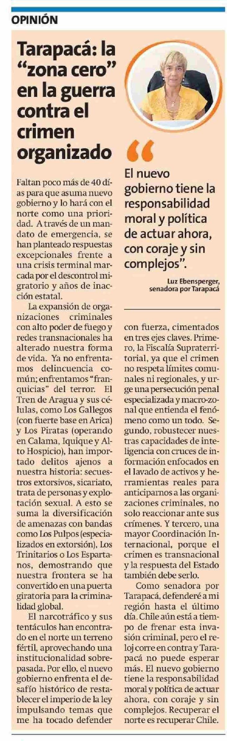 Columnas de Opinión: Tarapacá: la "zona cero" en la guerra contra el crimen organizado