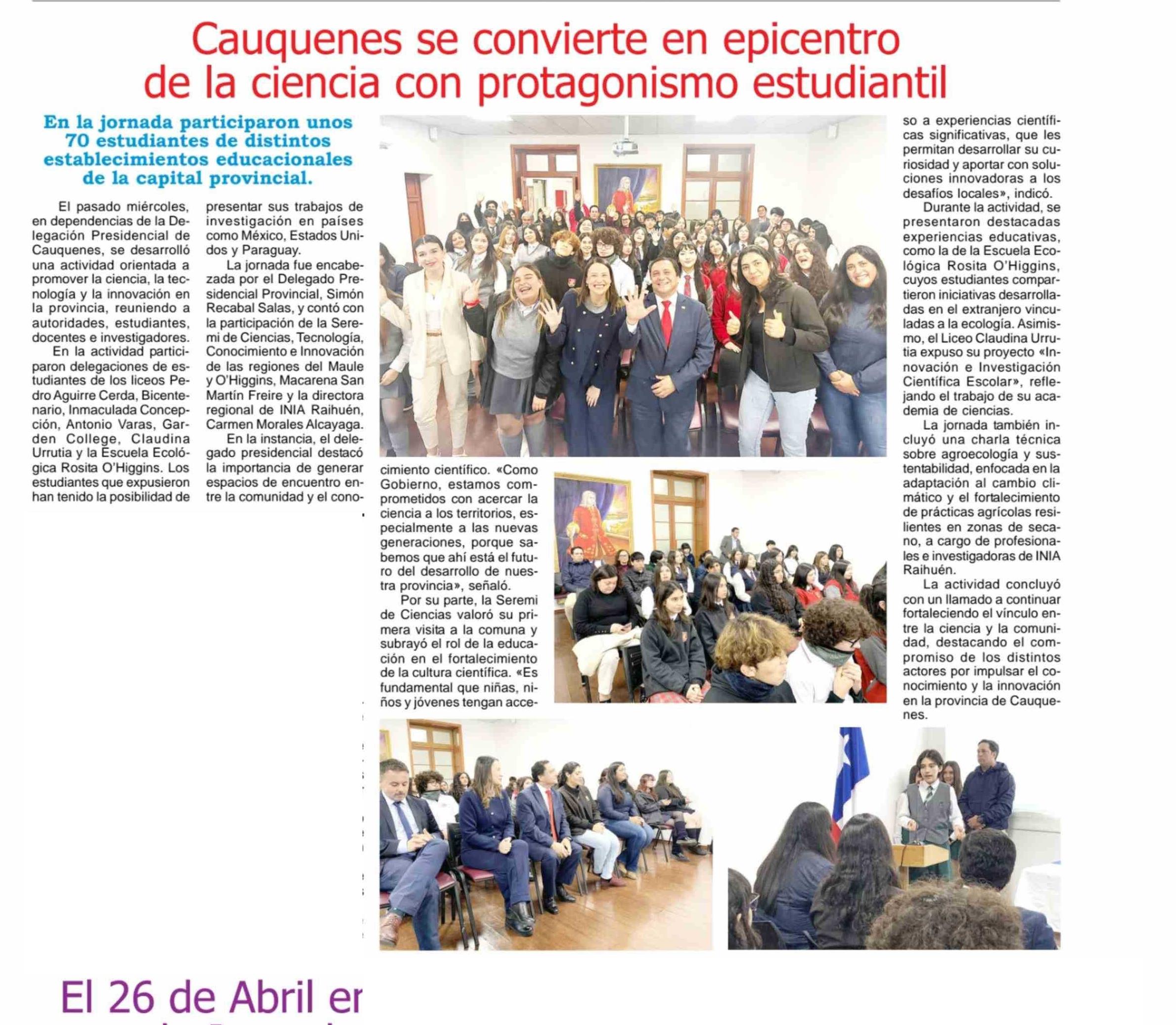 Título: Cauquenes se convierte en epicentro de la ciencia con protagonismo estudiantil