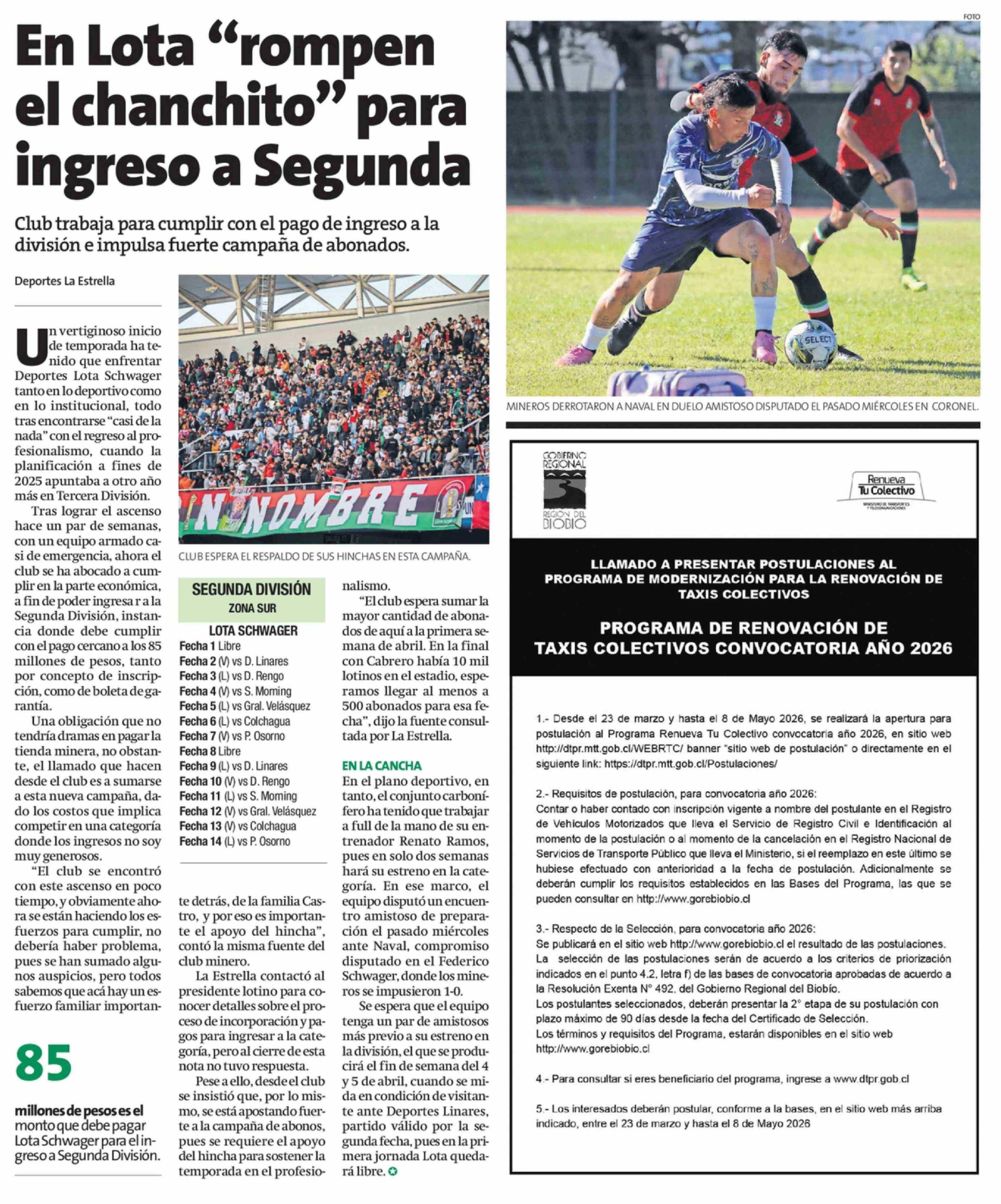 En Lota “rompen el chanchito" para ingreso a Segunda