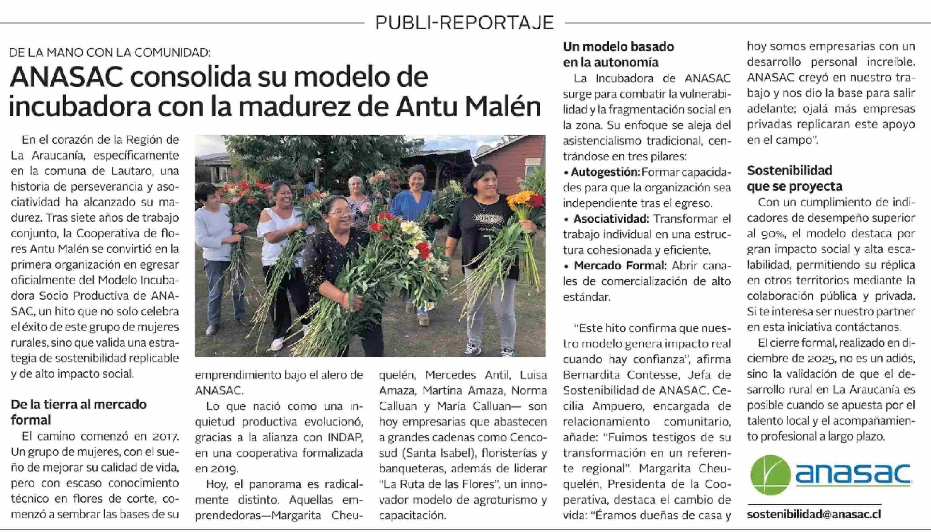 Título: ANASAC consolida su modelo de incubadora con la madurez de Antu Malén