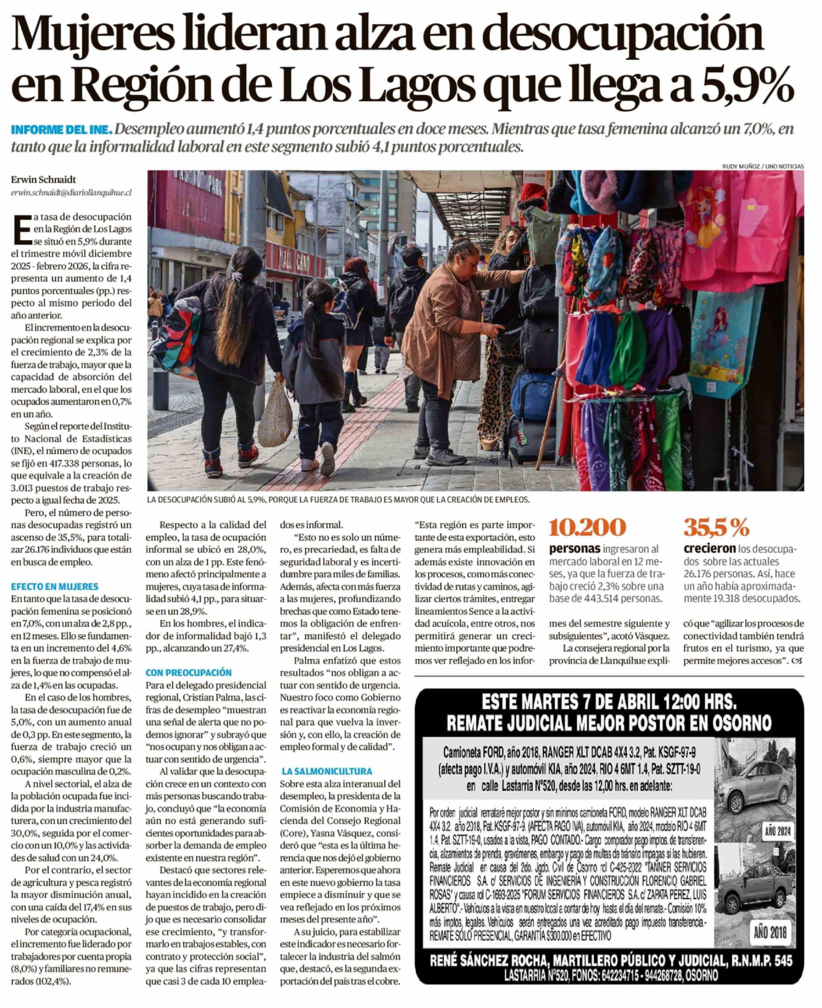 Mujeres lideran alza en desocupación en Región de Los Lagos que llega a 5,9%