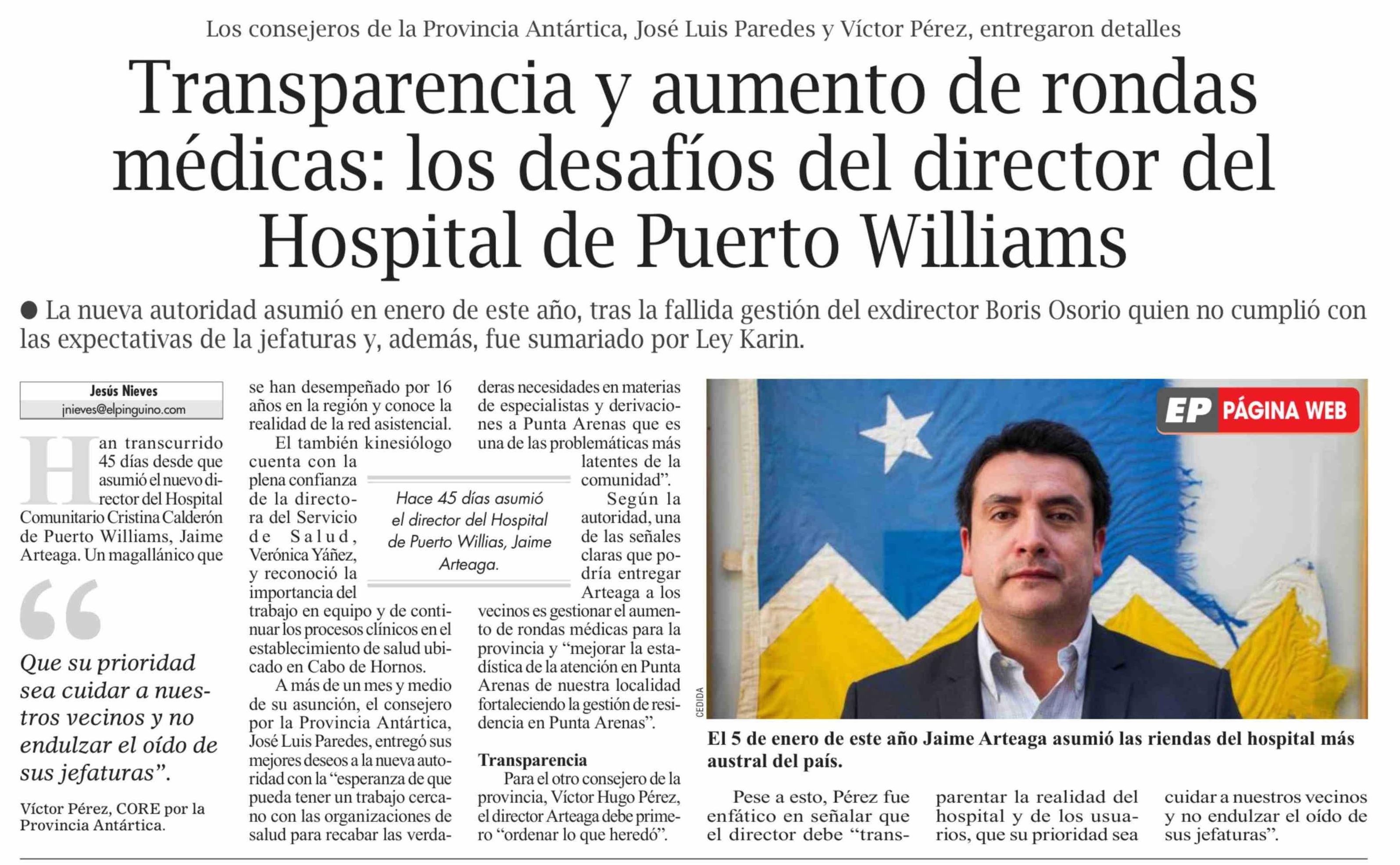 Título: Transparencia y aumento de rondas médicas: los desafíos del director del Hospital de Puerto Williams