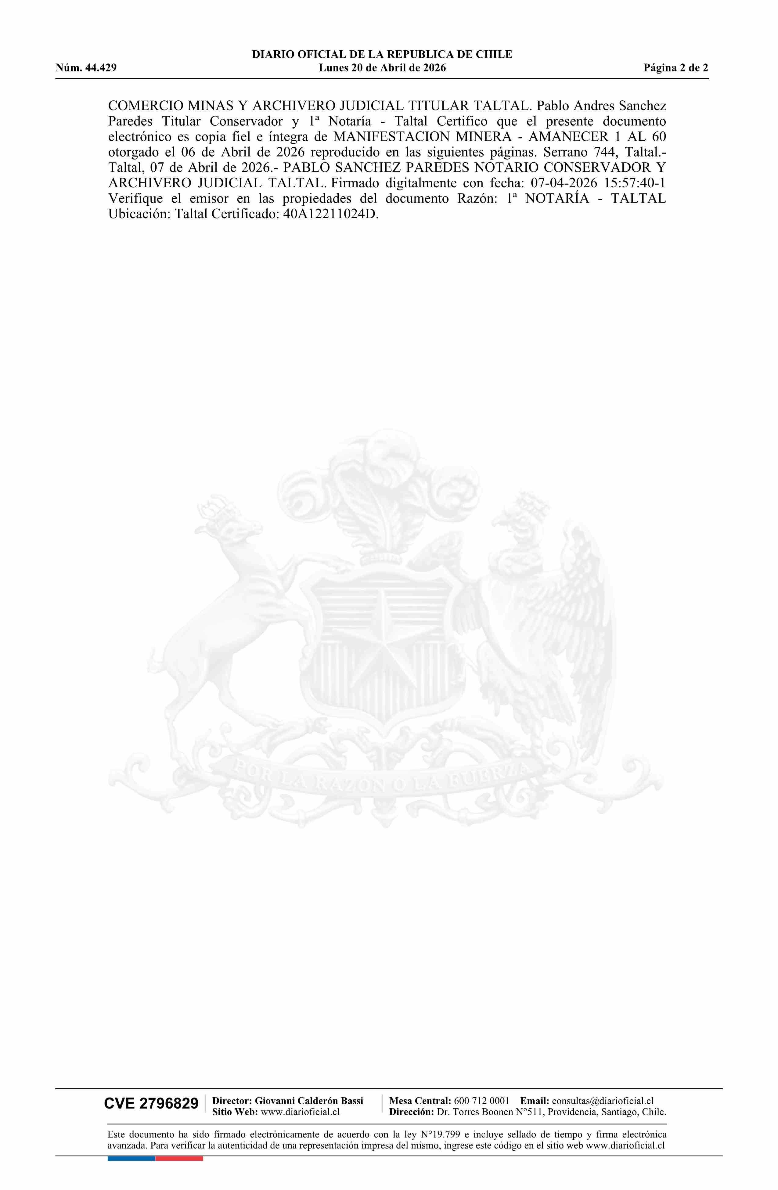 DIARIO OFICIAL CHILE - BOLETÍN OFICIAL DE MINERÍA (DIARIO OFICIAL CHILE – BOM – MANIFESTACIONES MIN)