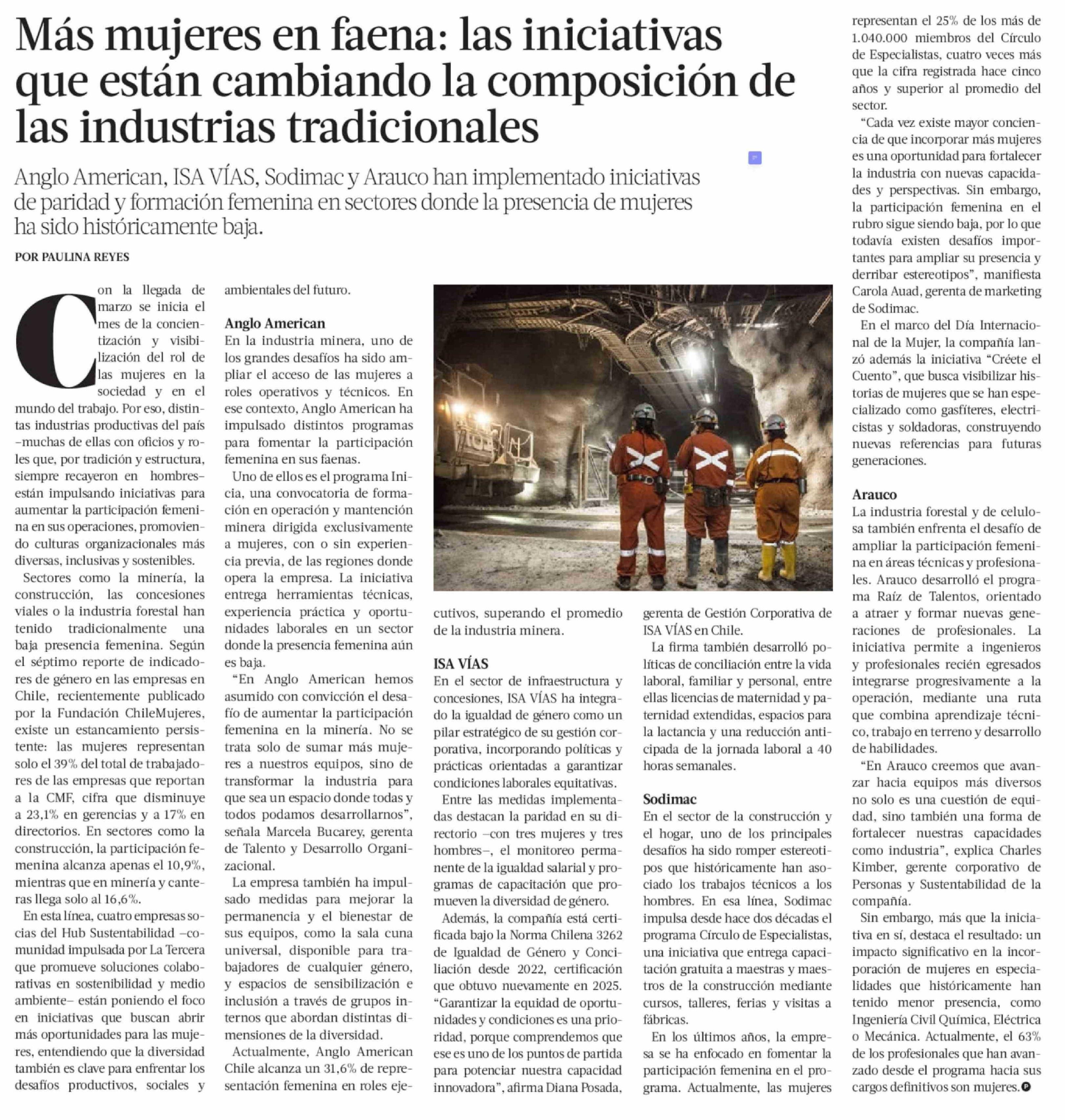 Título: Más mujeres en faena: las iniciativas que están cambiando la composición de las industrias tradicionales