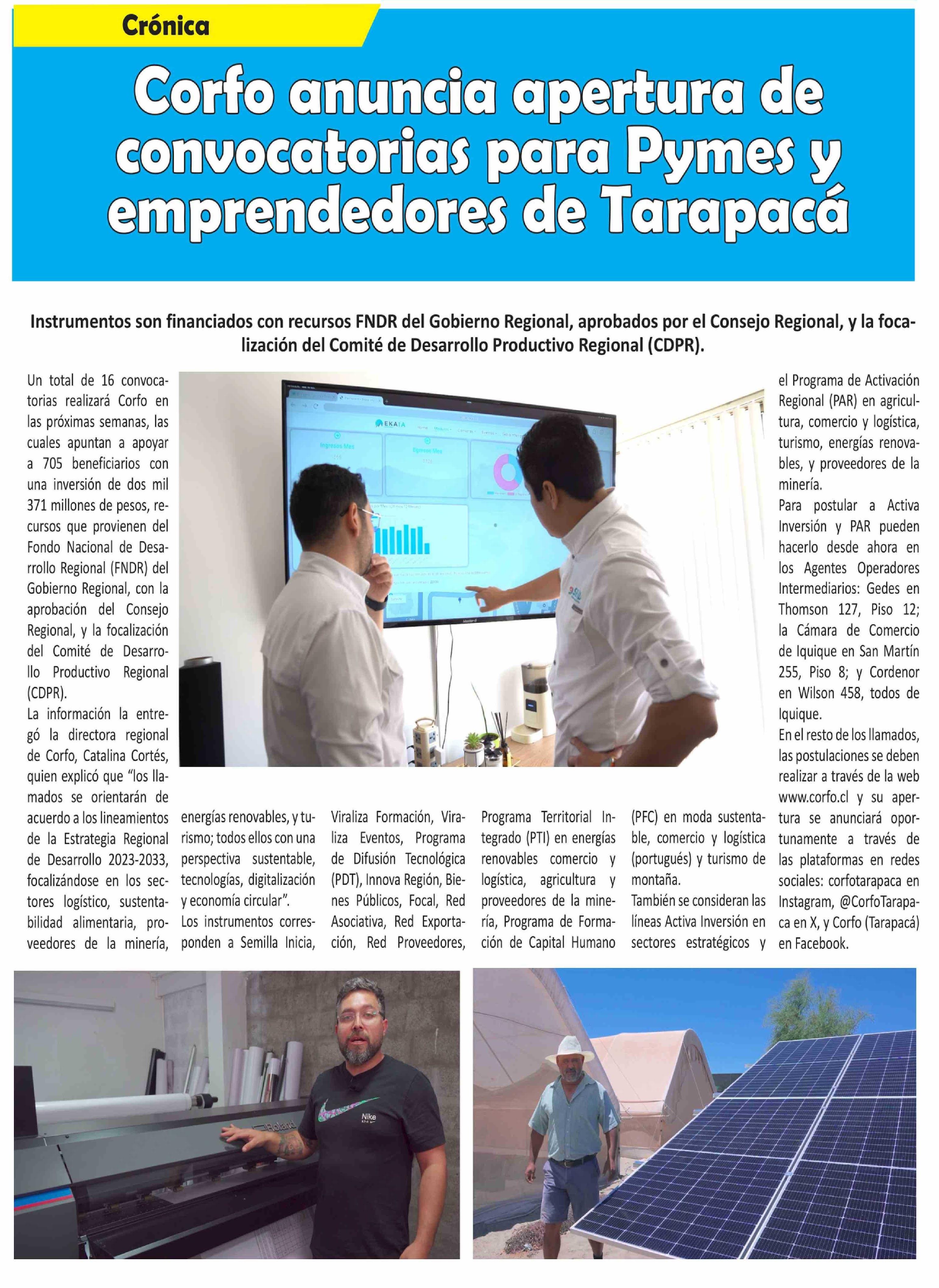 Corfo anuncia apertura de convocatorias para Pymes y emprendedores de Tarapacá