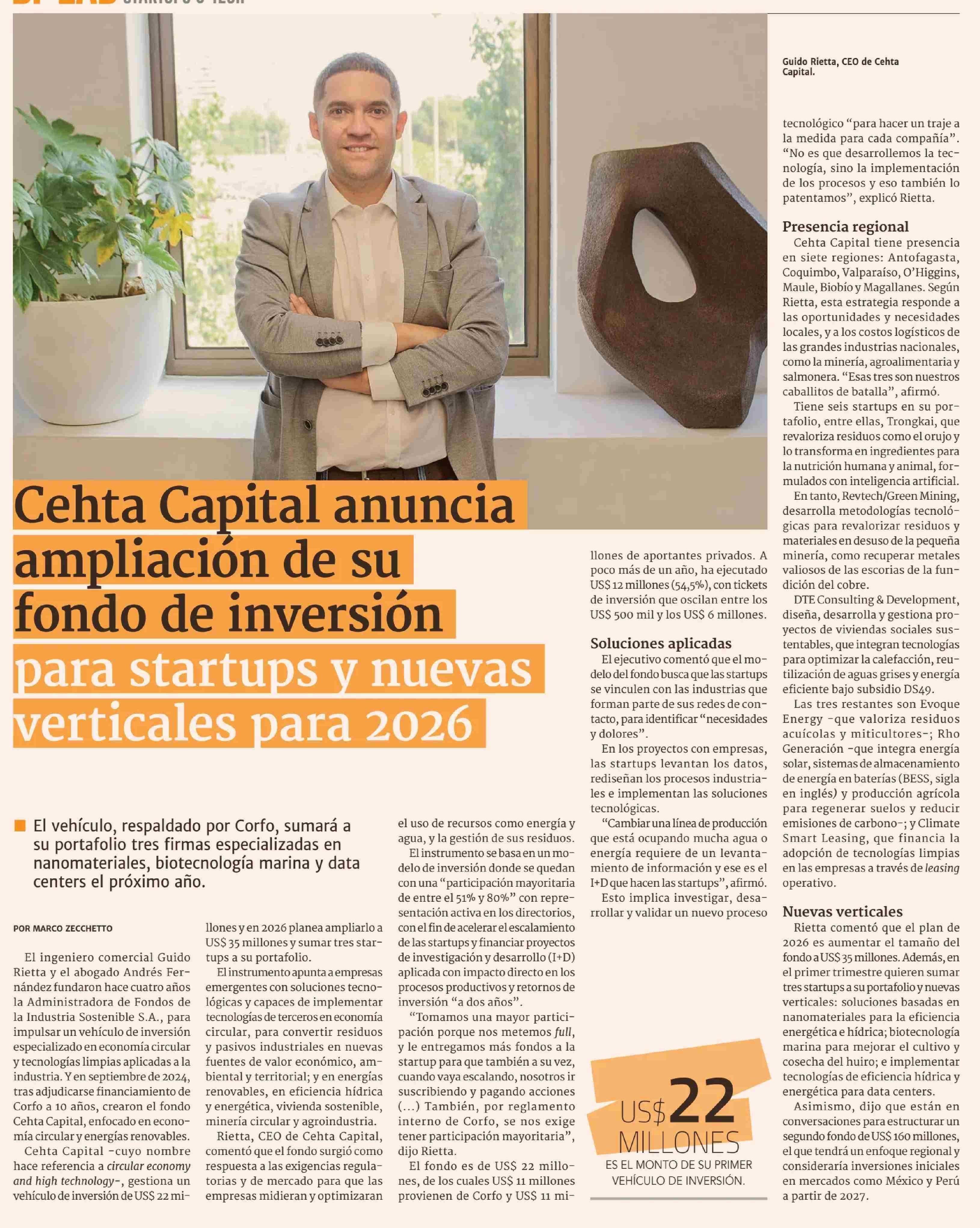 Cehta Capital anuncia ampliación de su fondo de inversión para startups y nuevas verticales para 2026