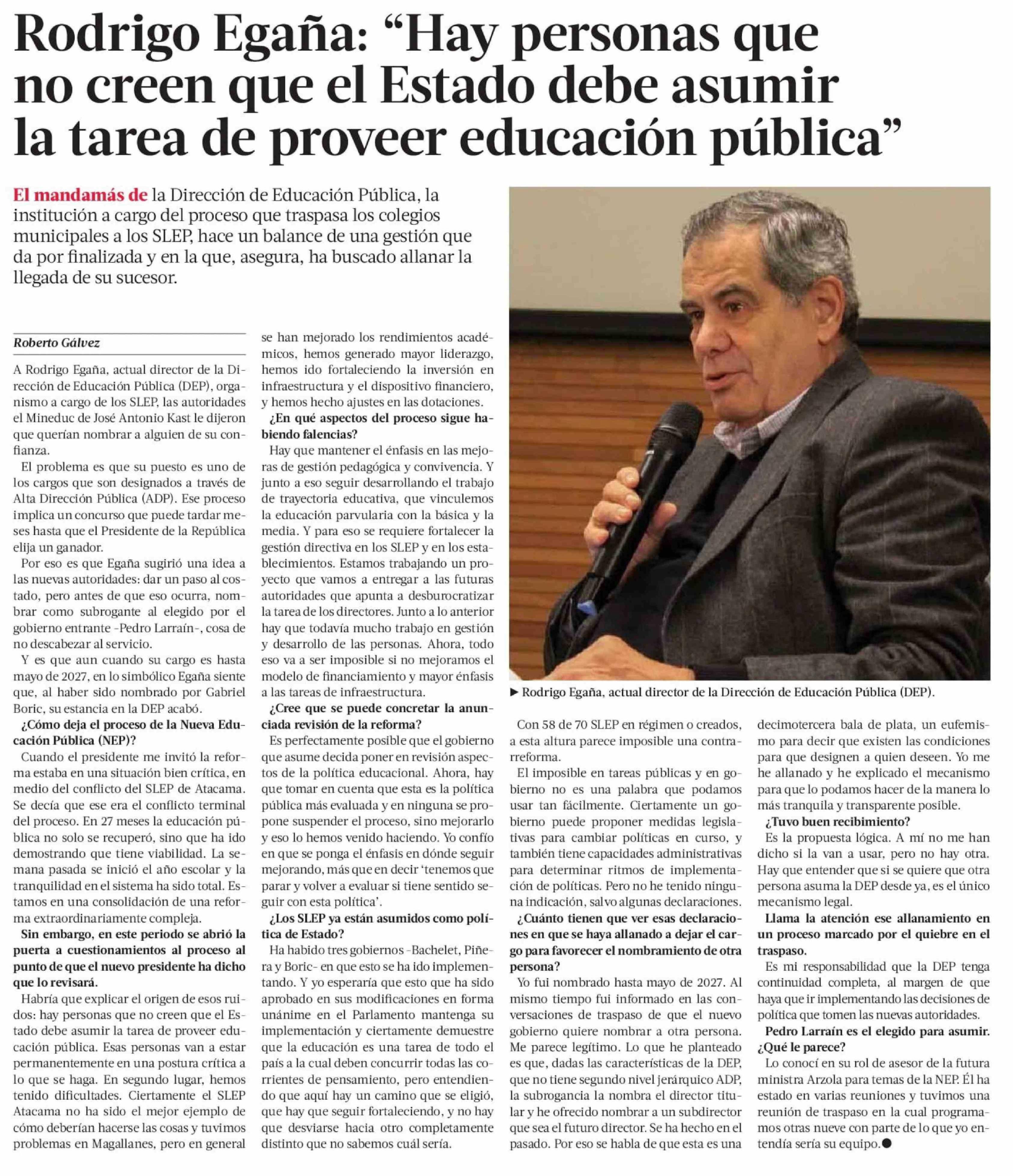 Rodrigo Egaña: "Hay personas que no creen que el Estado debe asumir la tarea de proveer educación pública"