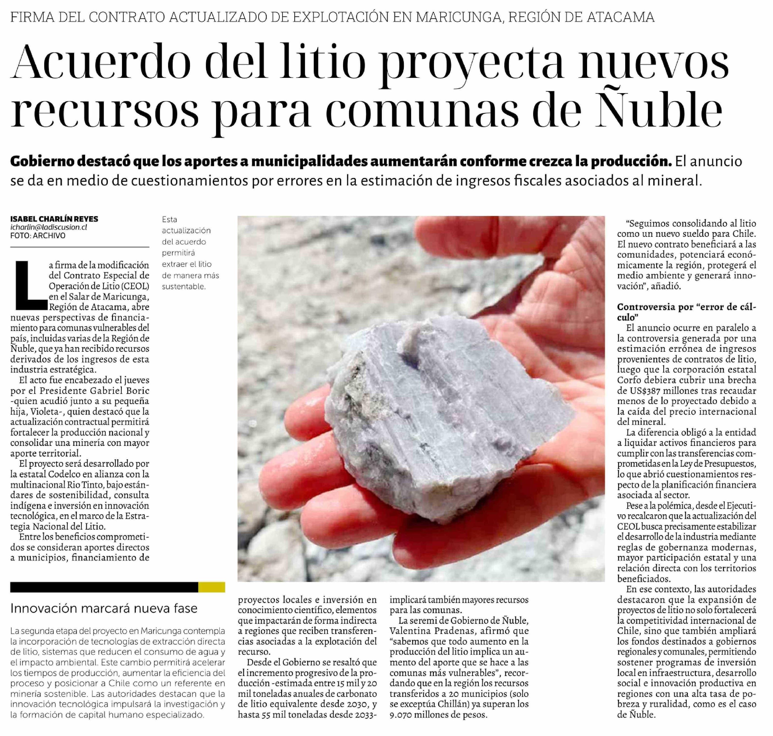 Acuerdo del litio proyecta nuevos recursos para comunas de Nuble