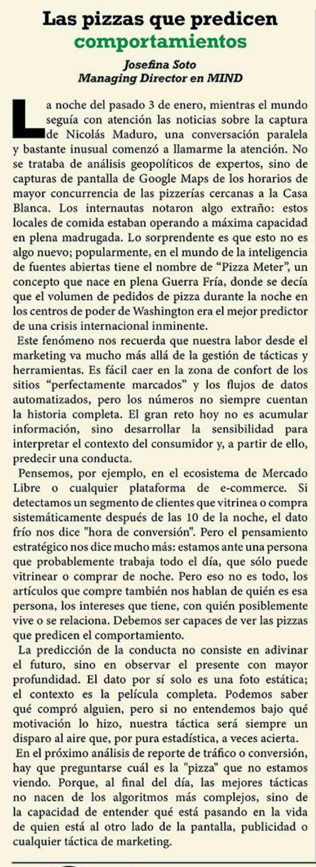 Columnas de Opinión: Las pizzas que predicen comportamientos