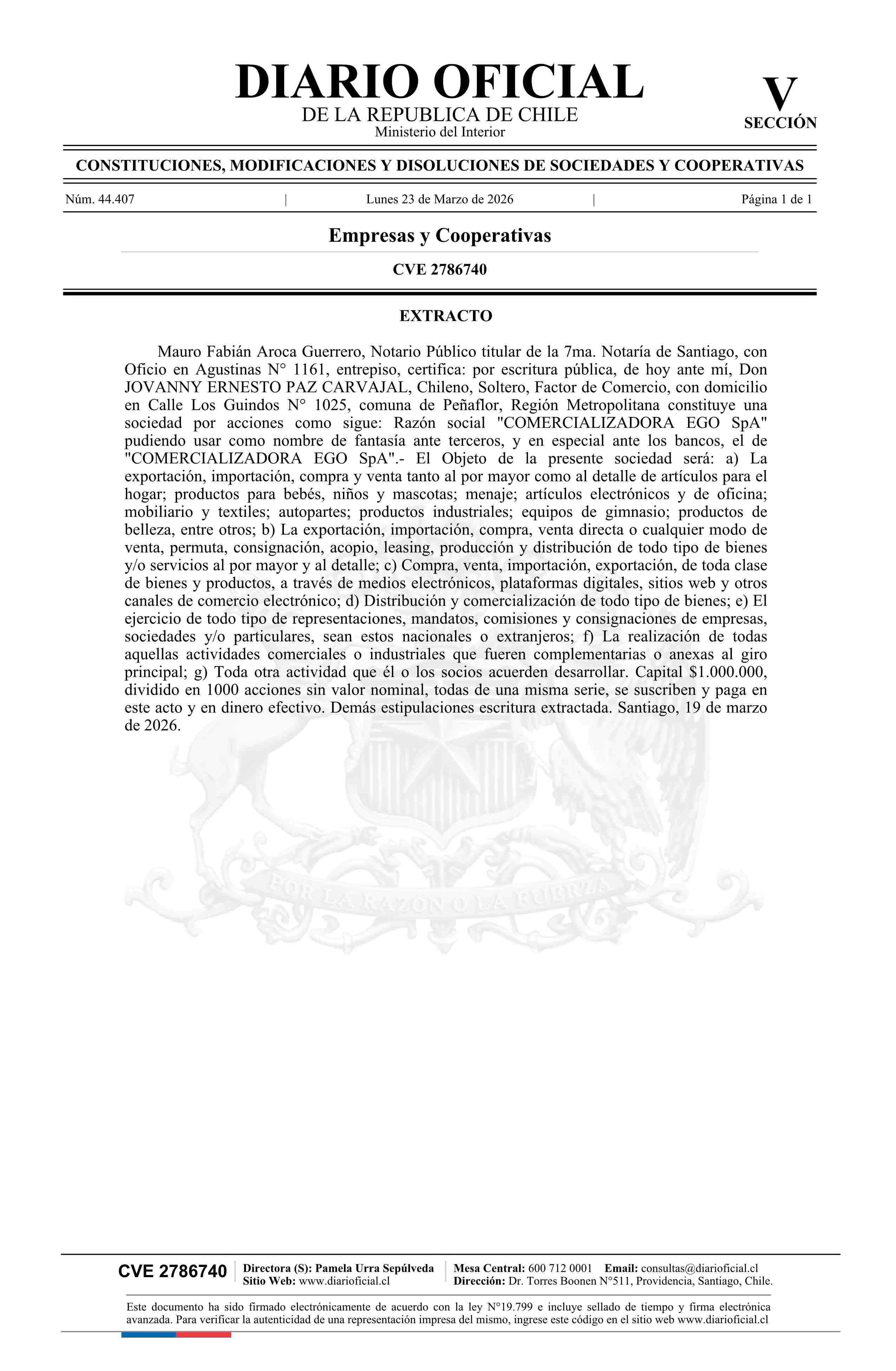 COMERCIALIZADORA EGO SpA