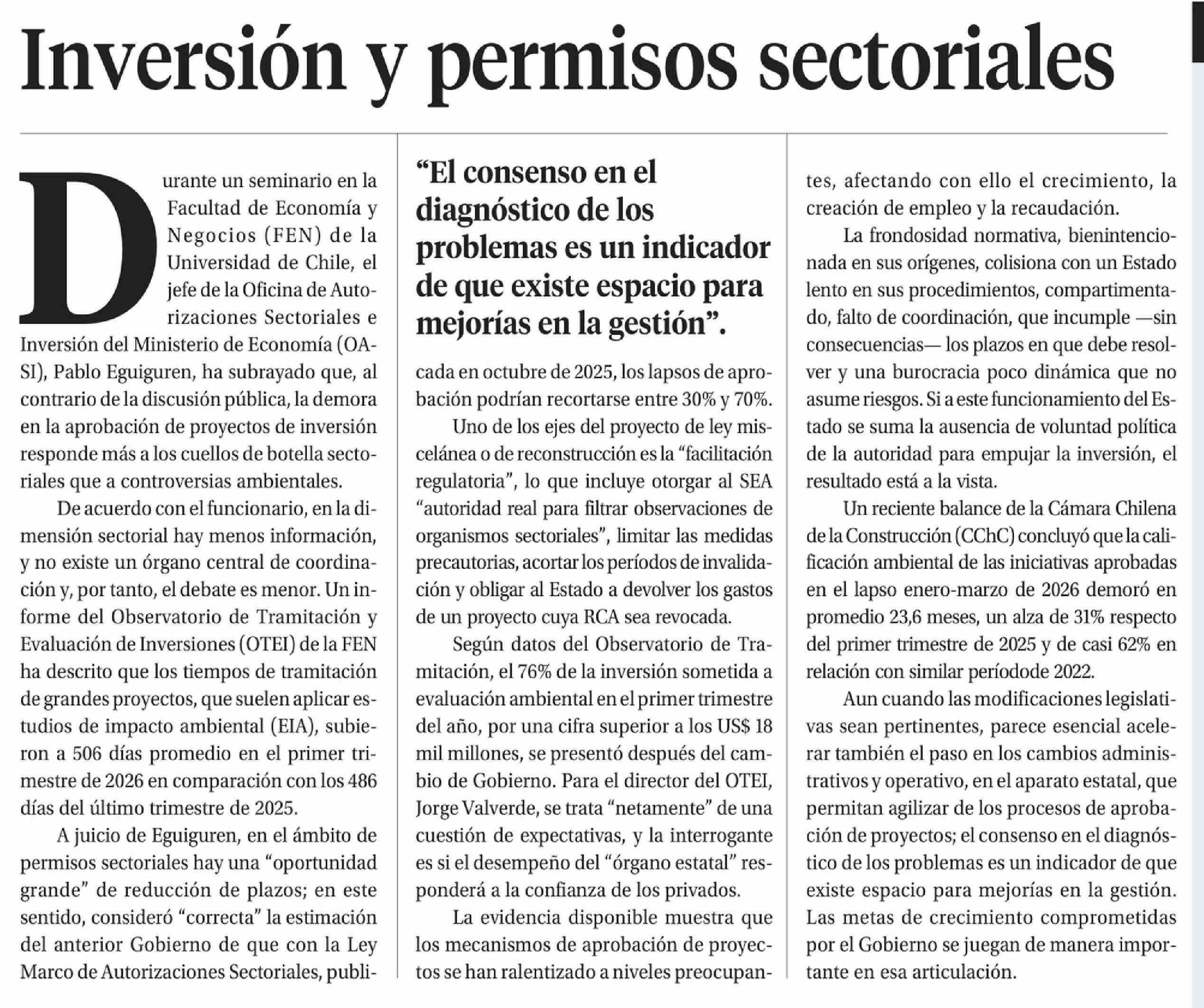 Editorial: Inversión y permisos sectoriales