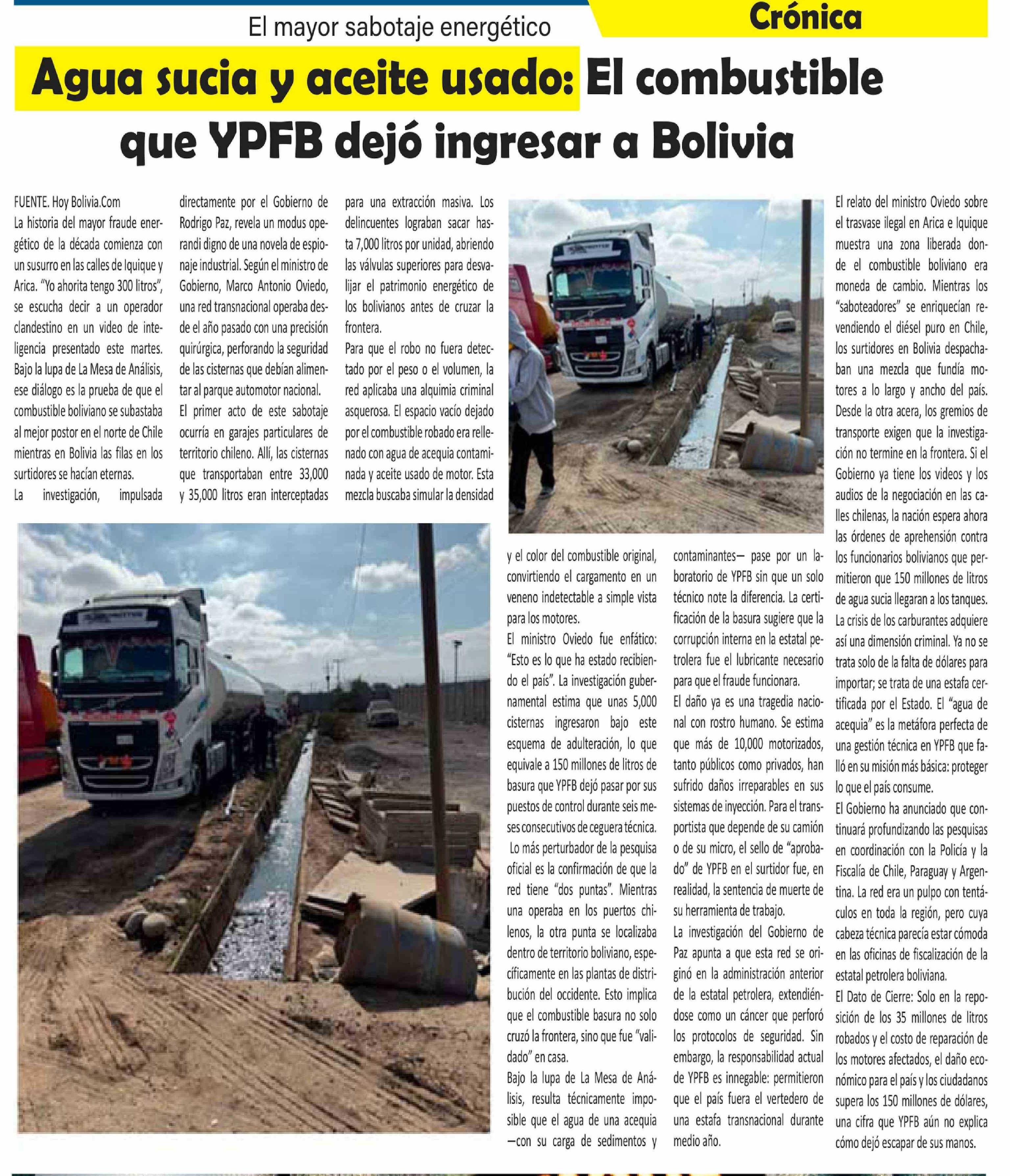 Agua sucia y aceite usado: El combustible que YPFB dejó ingresar a Bolivia