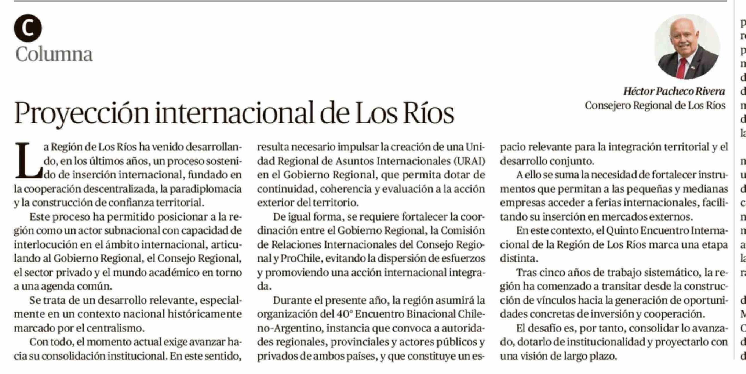 Columnas de Opinión: Proyección internacional de Los Ríos