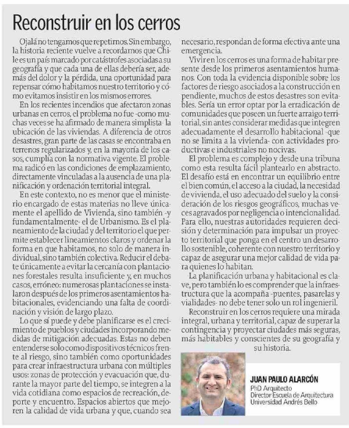 Columnas de Opinión: Reconstruir en los cerros