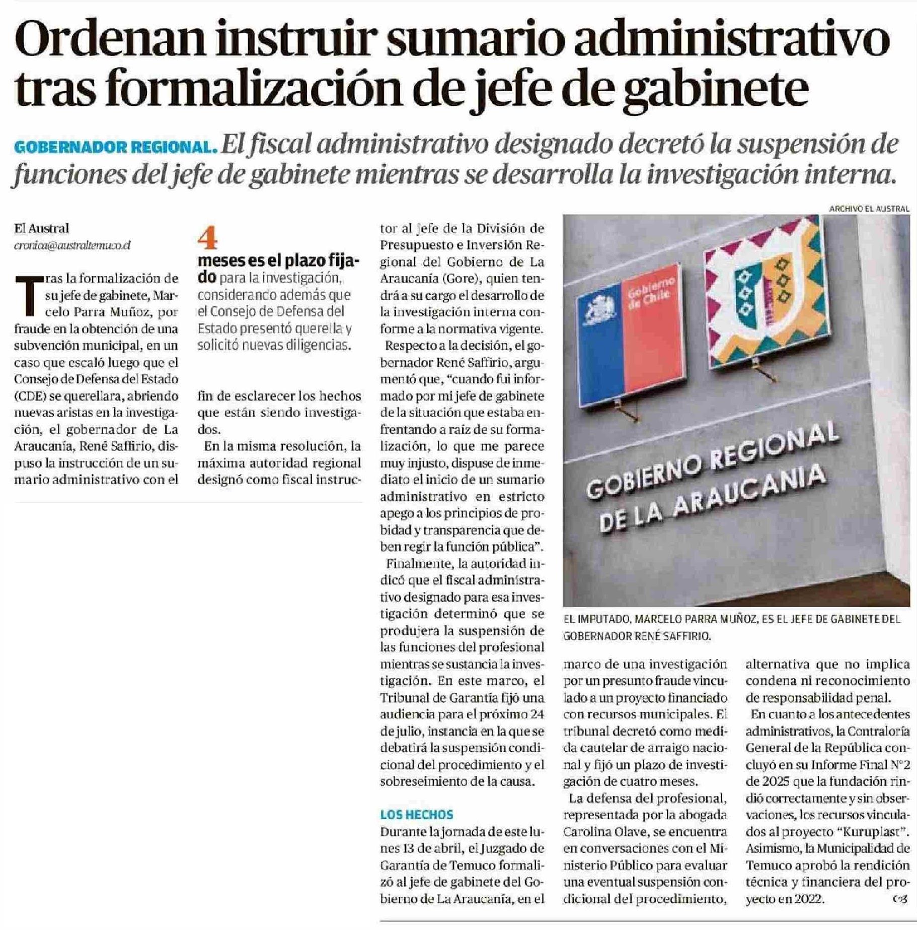 Fecha: 15-04-2026 Sector: Noticia general Región: Región de la Araucanía