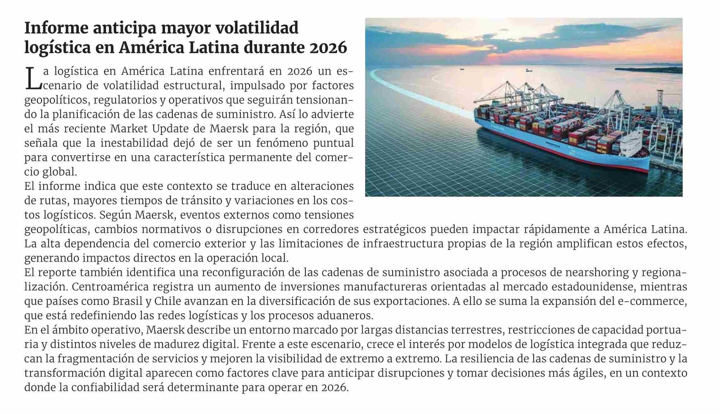 Título: Informe anticipa mayor volatilidad logística en América Latina durante