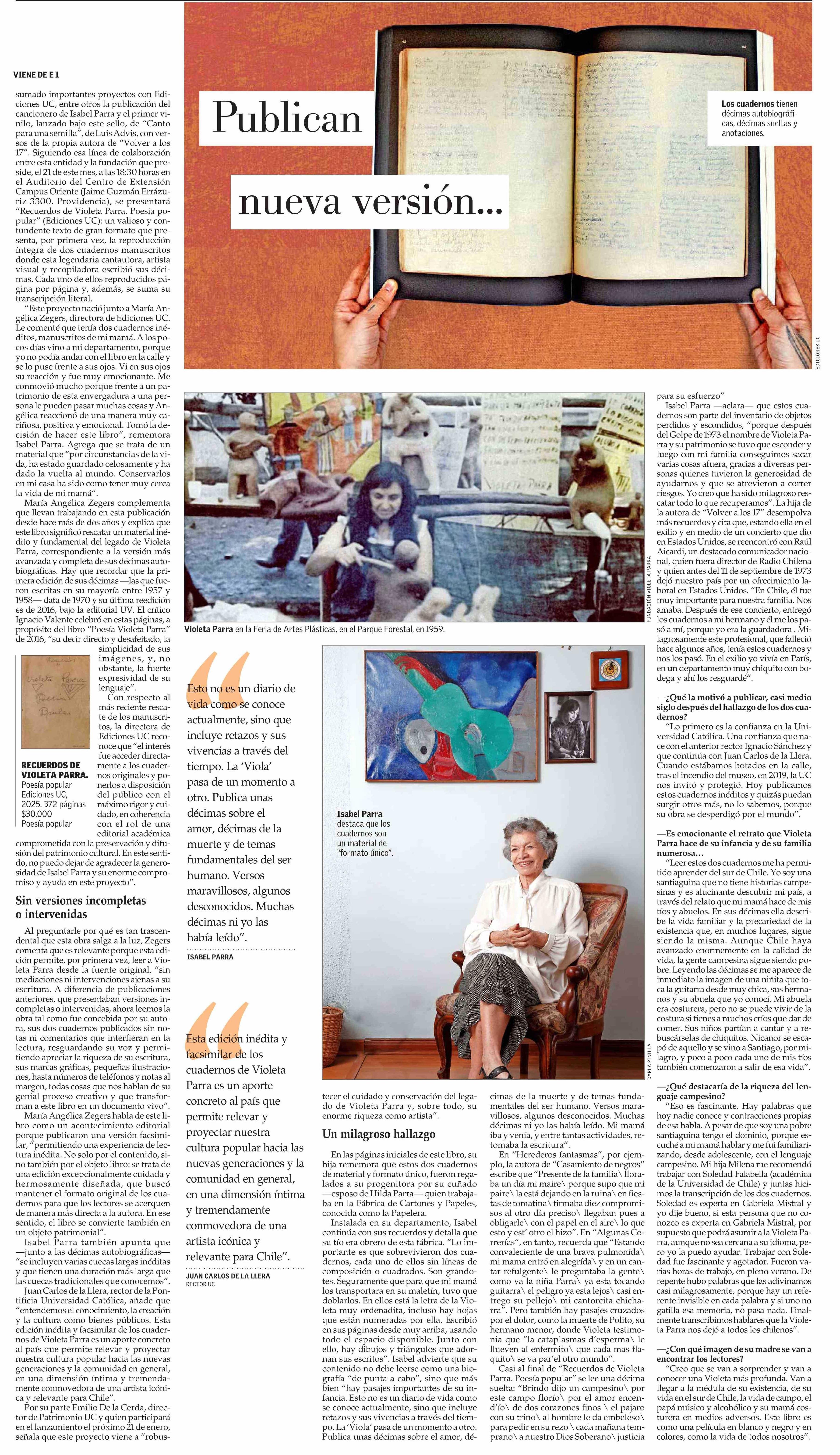 Publican nueva versión de las DÉCIMAS AUTOBIOGRÁFICAS DE VIOLETA PARRA