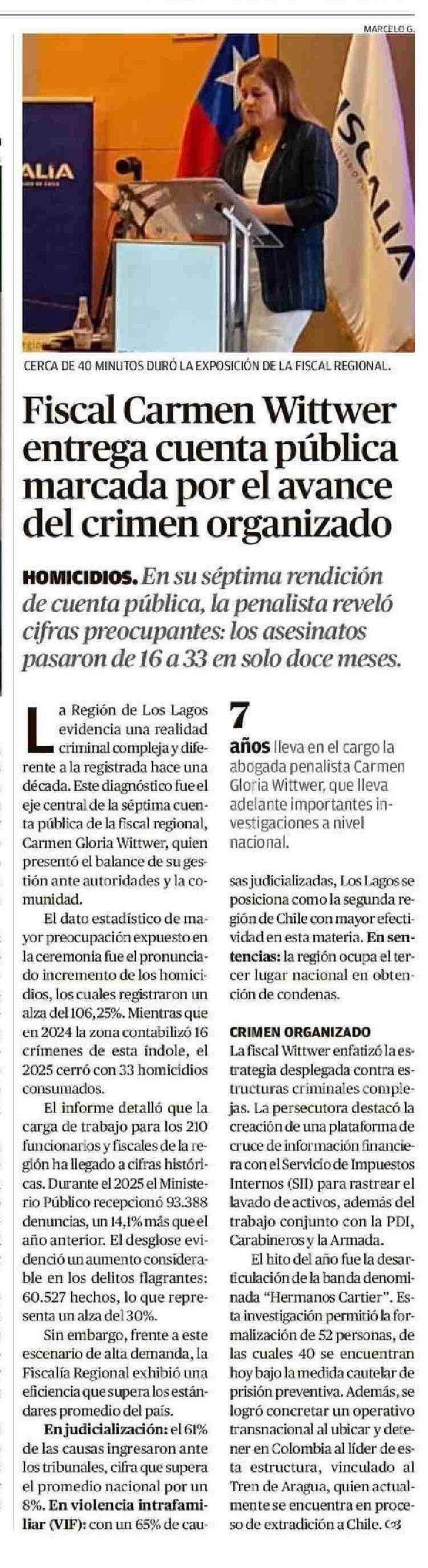 Fiscal Carmen Wittwer entrega cuenta pública marcada por el avance del crimen organizado