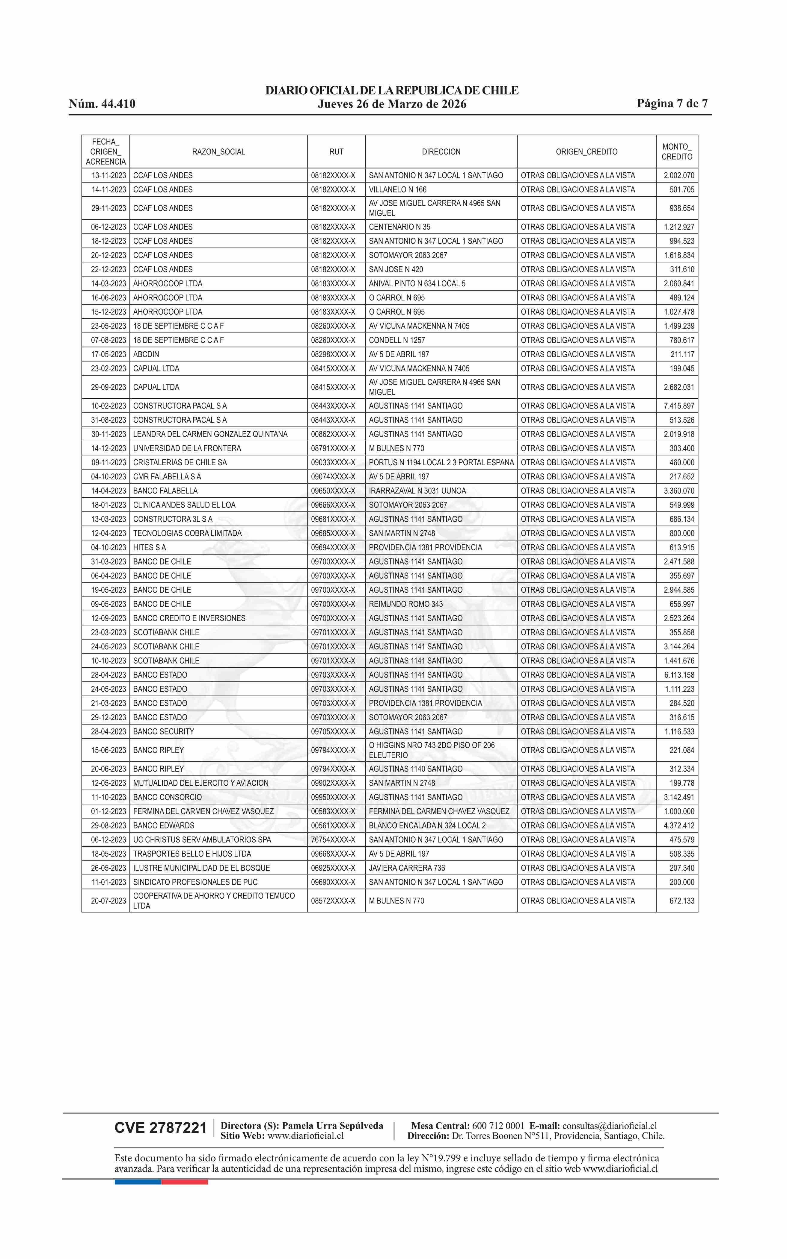| Fuente: | Diario Oficial Edición Electrónica (Diario Oficial de Chile - 4 Avisos Destacados) | Página(s): | 15-21 |