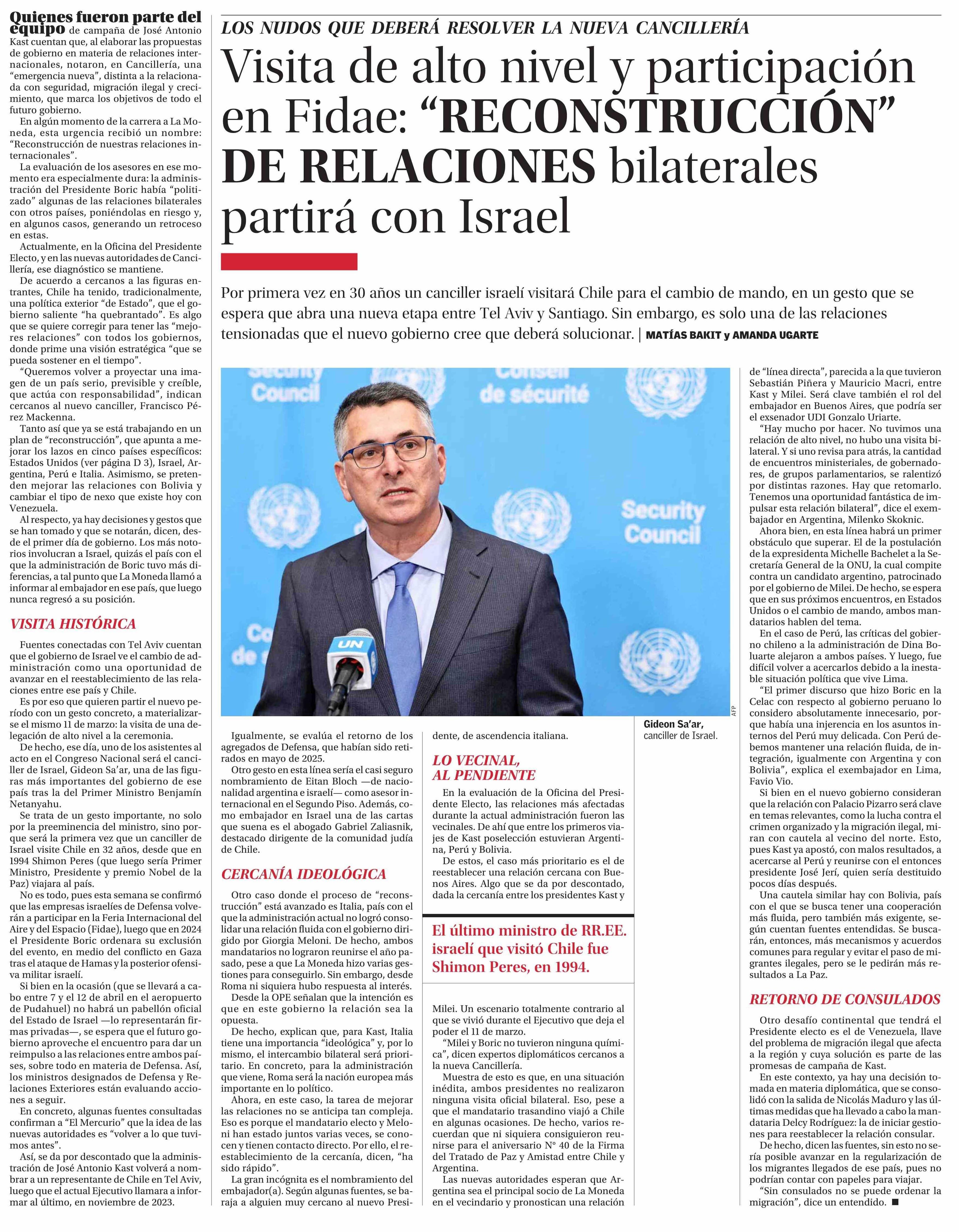 Visita de alto nivel y participación en Fidae: “RECONSTRUCCIÓN” DE RELACIONES bilaterales partirá con Israel