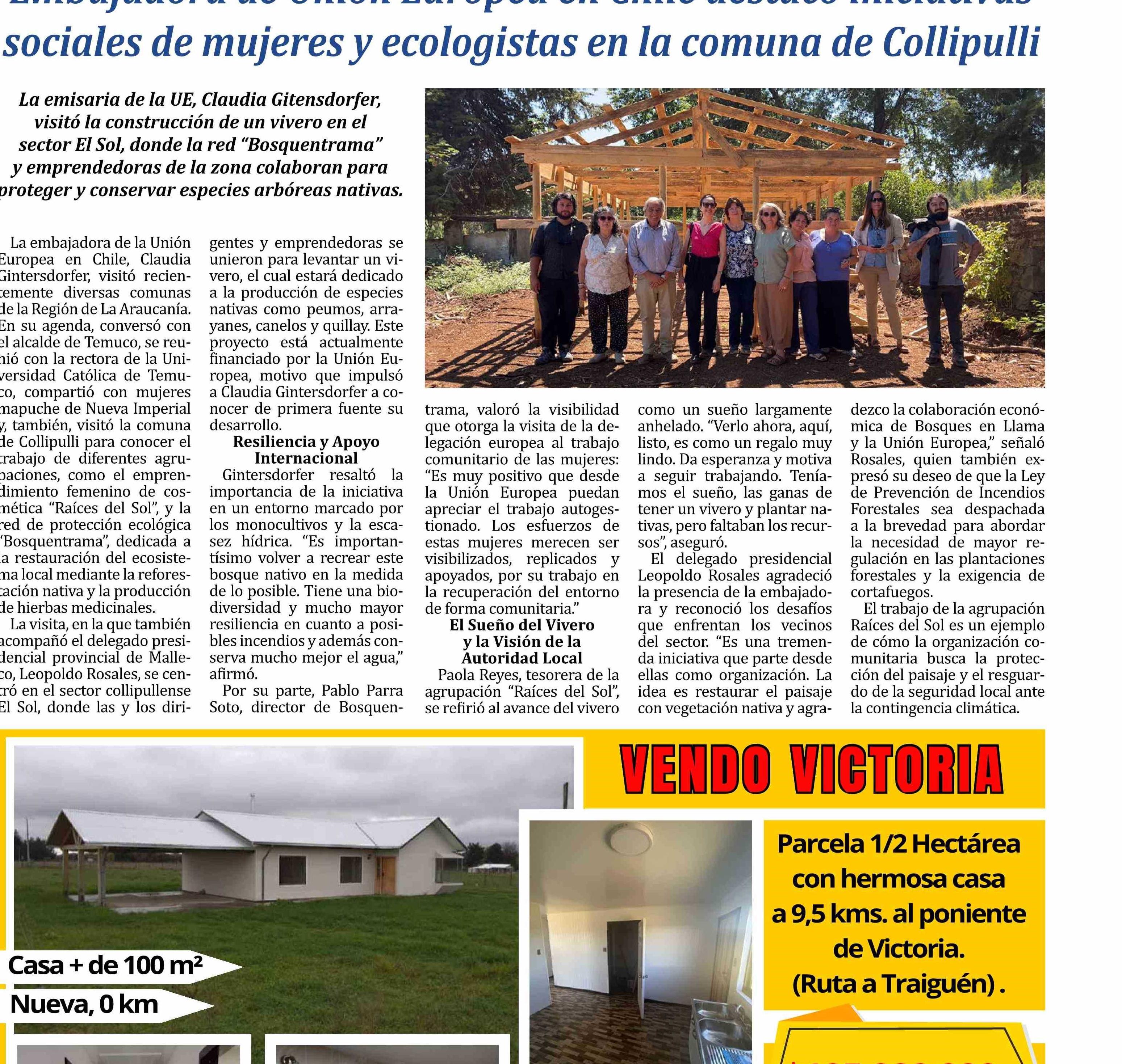 Embajadora de Unión Europea en Chile destacó iniciativas sociales de mujeres y ecologistas en la comuna de Collipulli