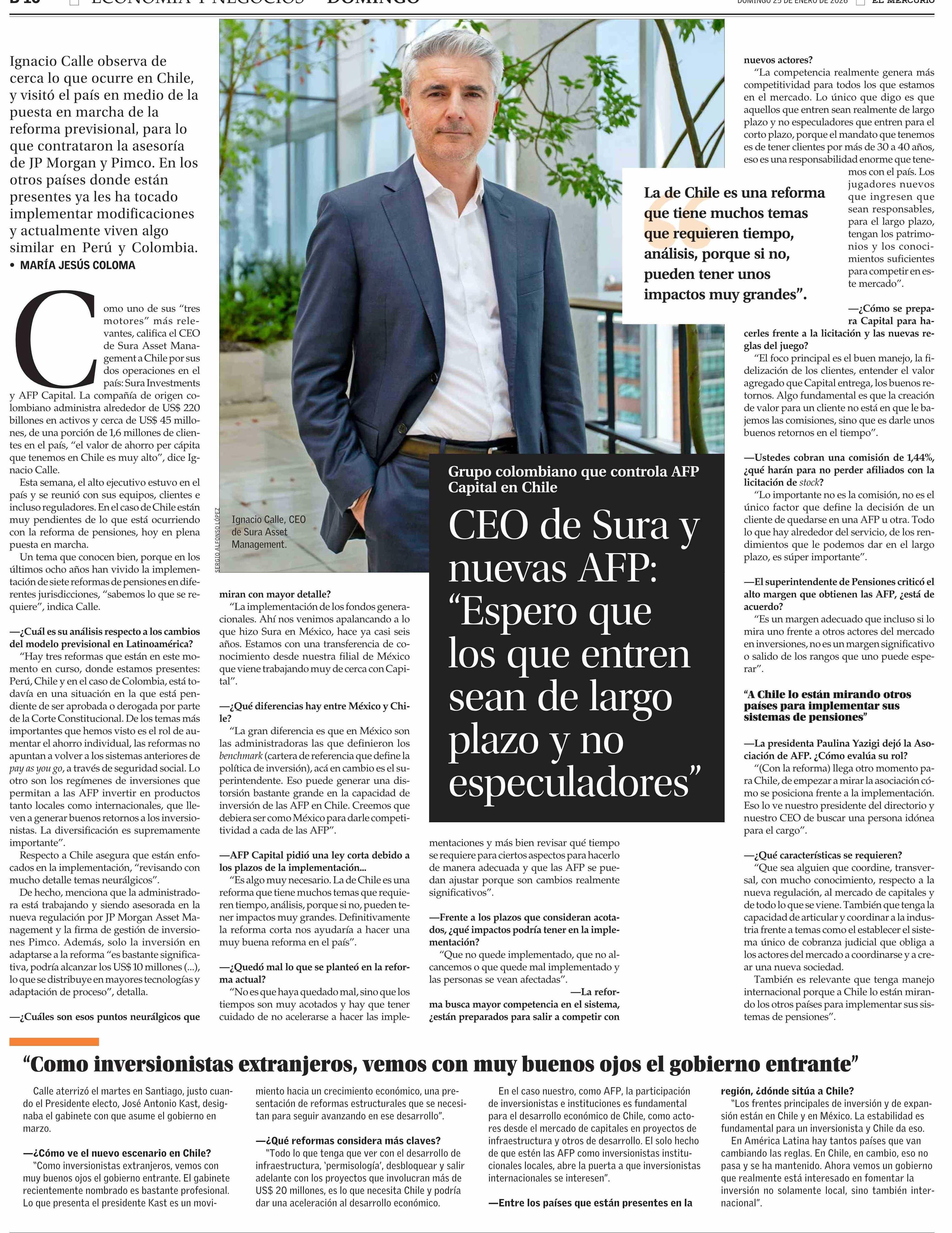 CEO de Sura y nuevas AFP: “Espero que los que entren sean de largo plazo y no especuladores”