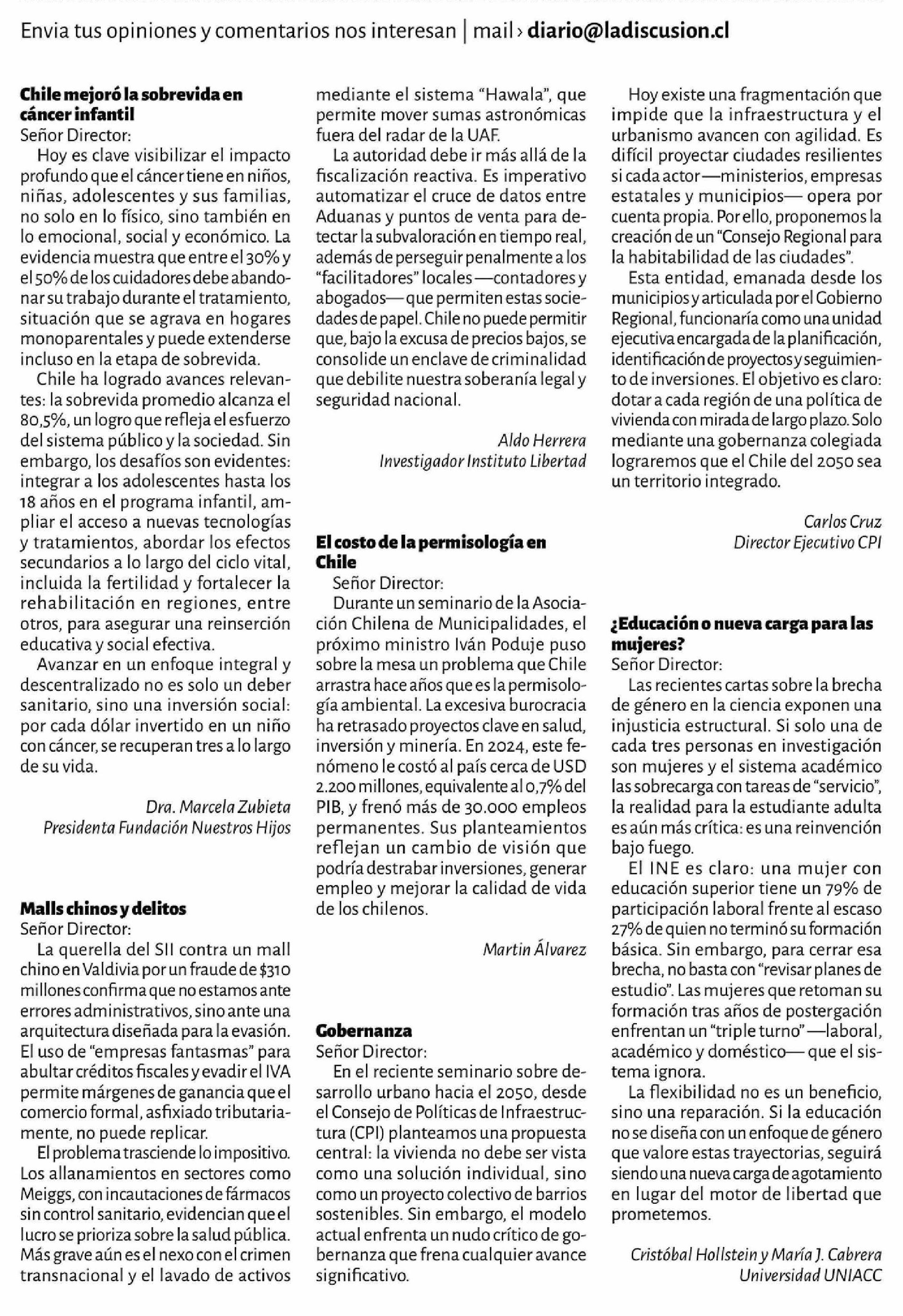 Título: Cartas: Chile mejoró la sobrevida en cancer infantil Señor Director: Hoy es clave visibilizar el impacto profundo que el cáncer tiene en niños, niñas, adolescentes y sus familias, no solo en lo físico, sino también en lo emocional, social y económico. La evidencia muestra que entre el 30% y el 50% d