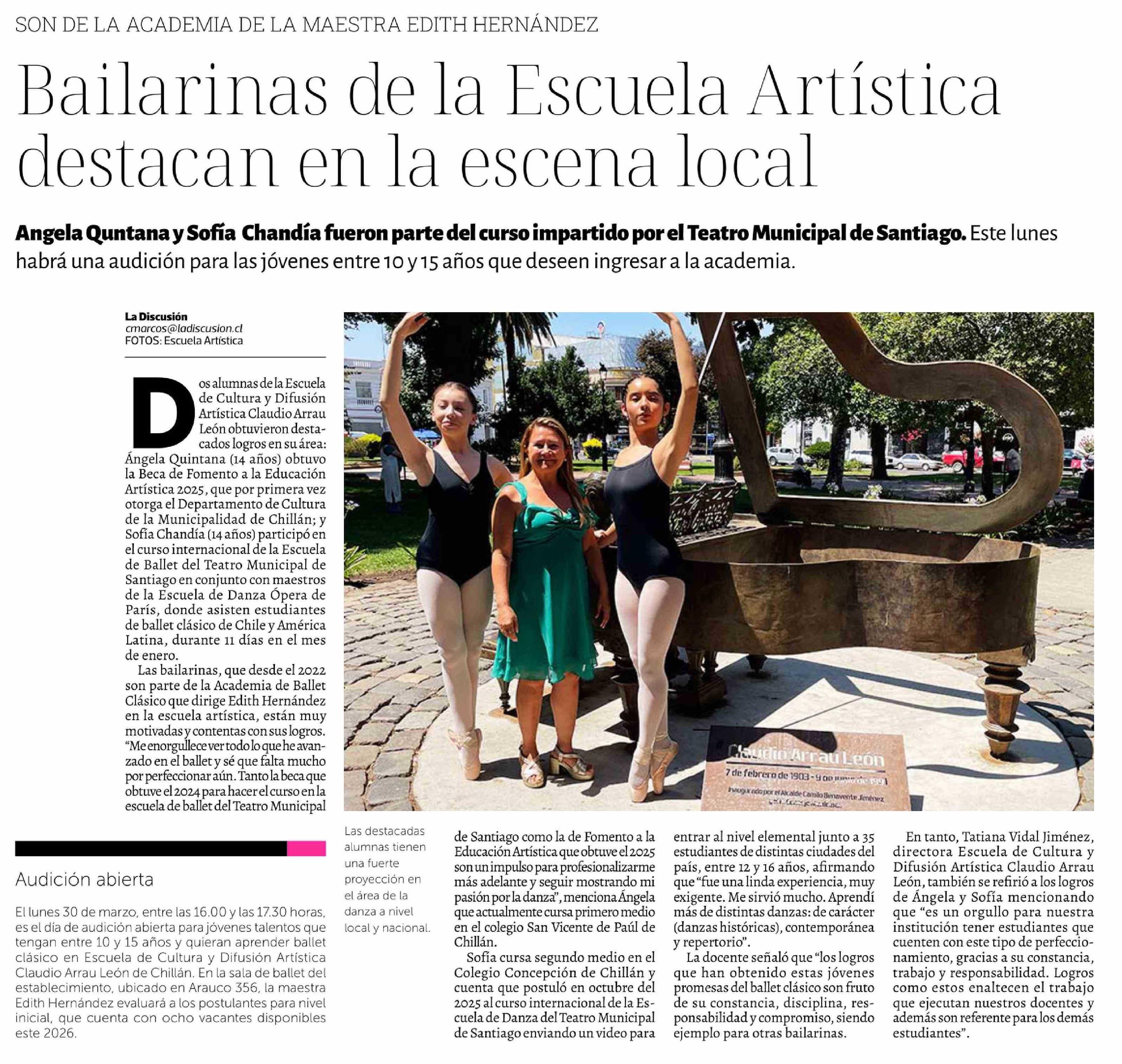 Bailarinas de la Escuela Artística destacan en la escena local